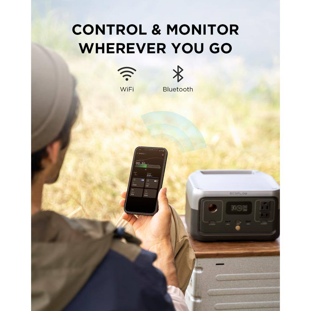 EcoFlow 300-Watt Continuous/600-Watt Peak Output RIVER2 Push-Button Start Power Station w/110W Solar Panel for Outdoor & Indoor