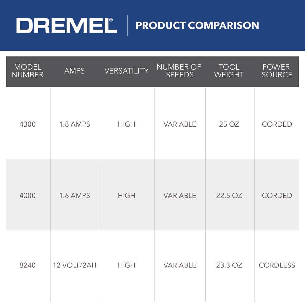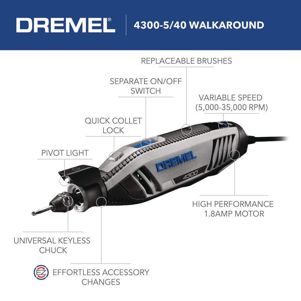Dremel 4300-5/40 4300 Series 1.8 Amp Variable Speed Corded Rotary Tool Kit with Mounted Light. 40 Accessories. 5 Attachments and Case