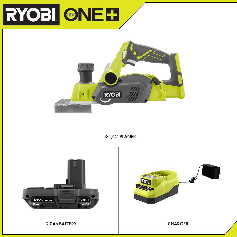 RYOBI P611-PSK005 ONE+ 18V Cordless 3-1/4 in. Planer with Dust Bag. 2.0 Ah Battery. and Charger