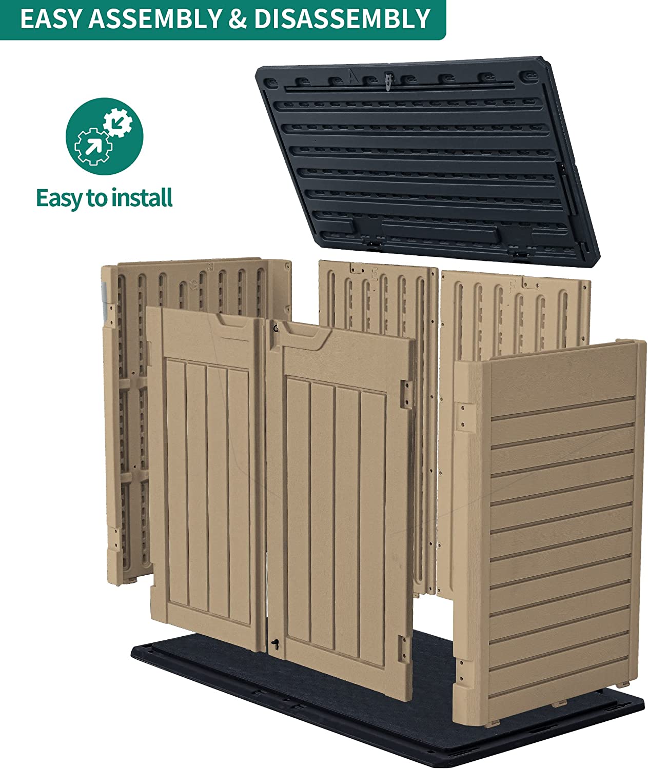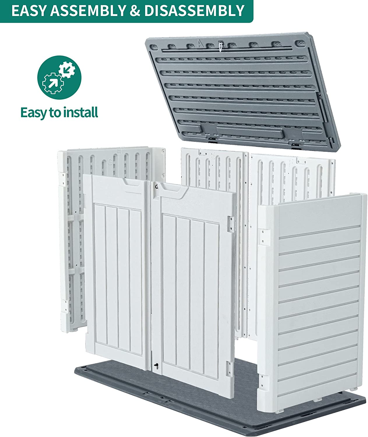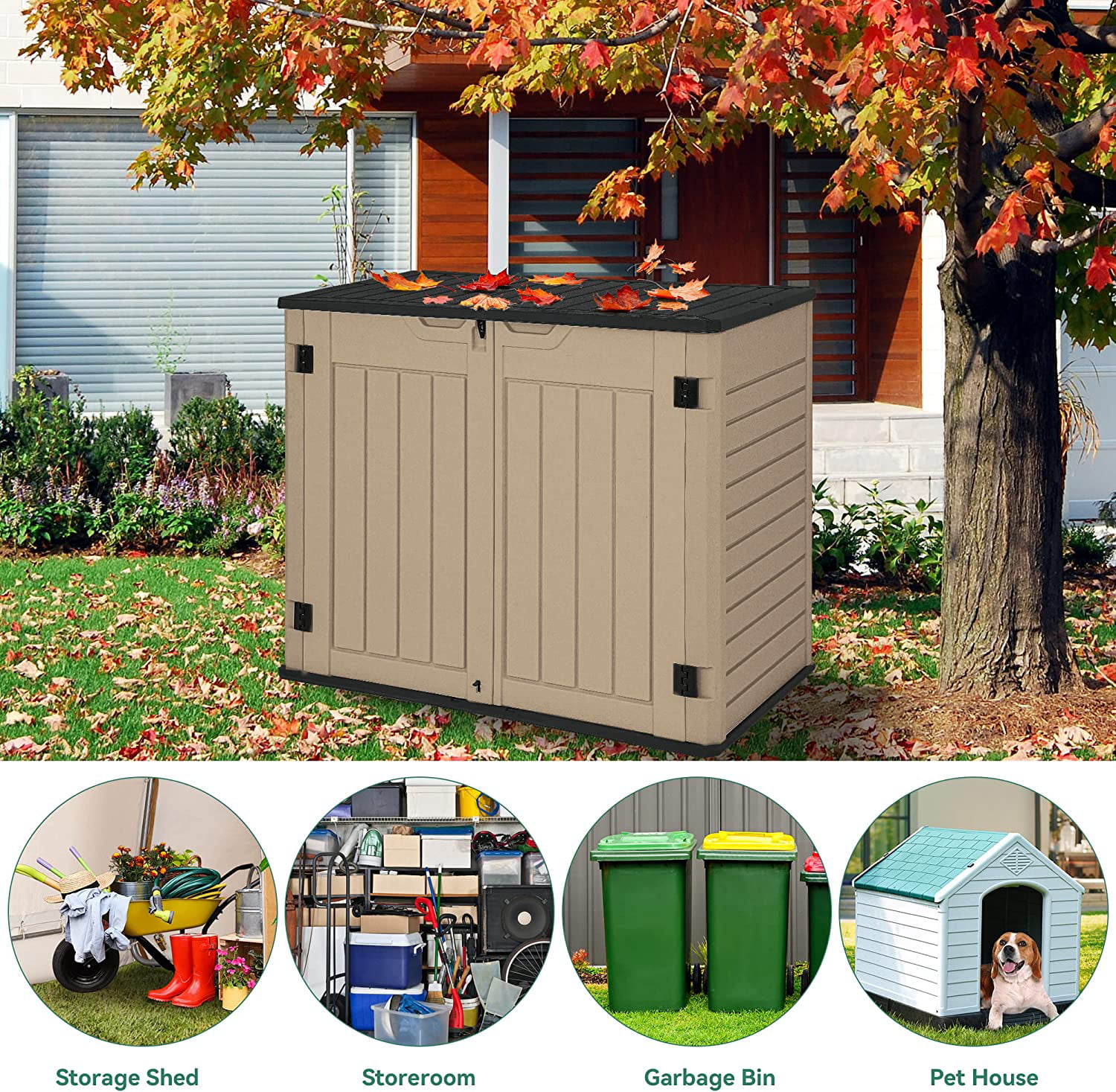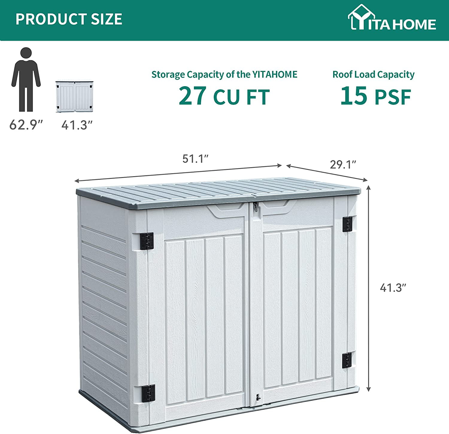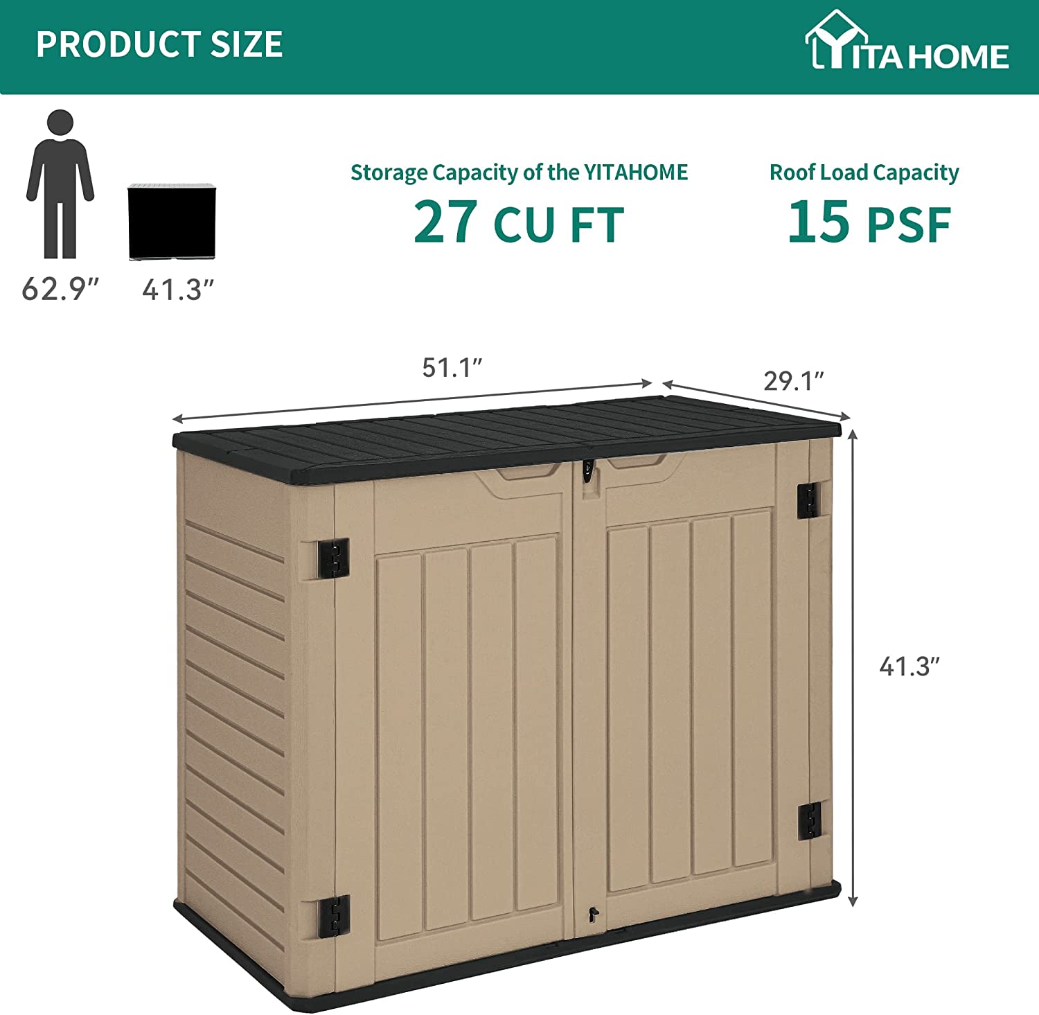YITAHOME 27 cu ft Outdoor Horizontal Storage Sheds. Weather Resistant Resin Tool Shed. Multi-Opening Door for Easy Storage of Bike. Trash Cans. Garden Tools. Lawn Mowers. Waterproof. Lockable