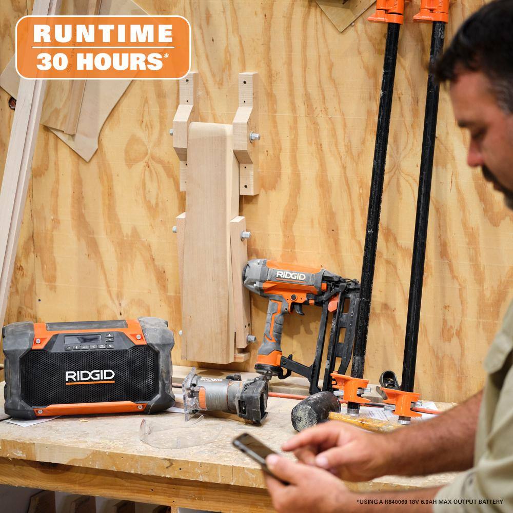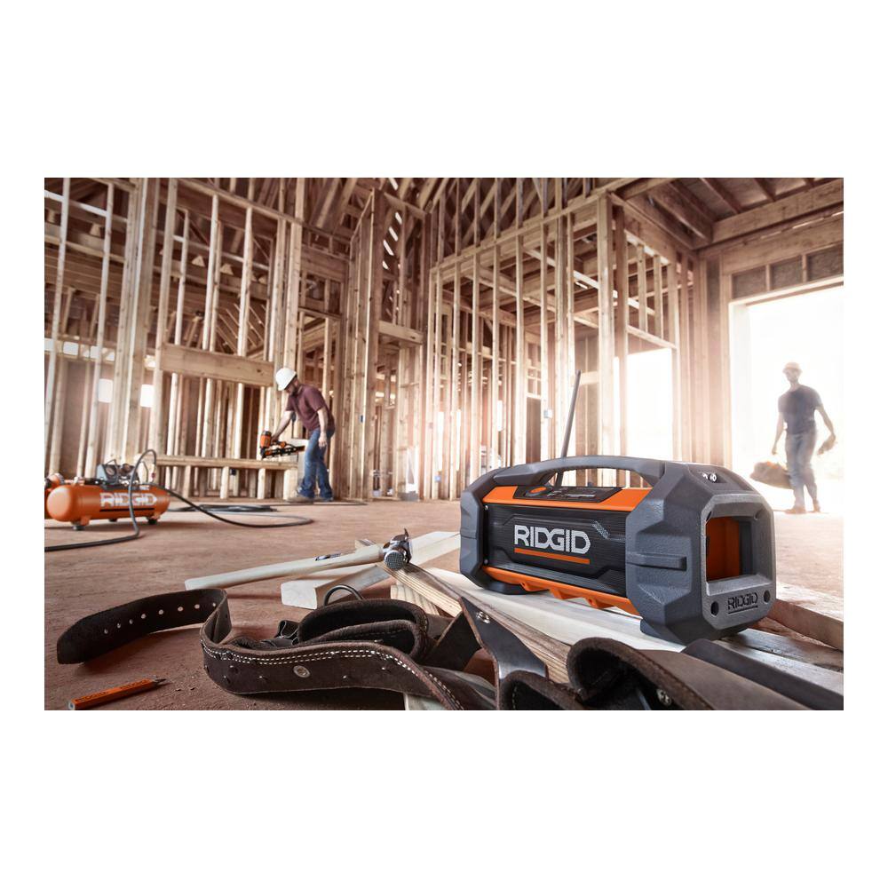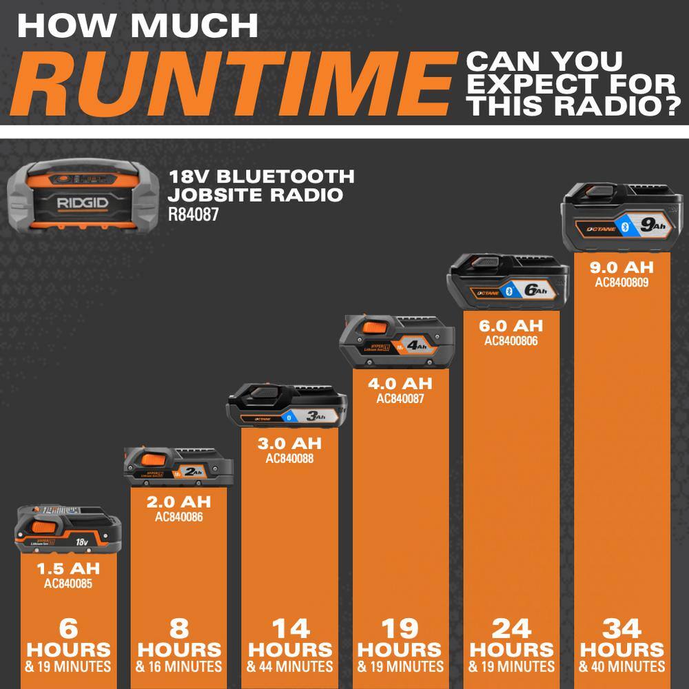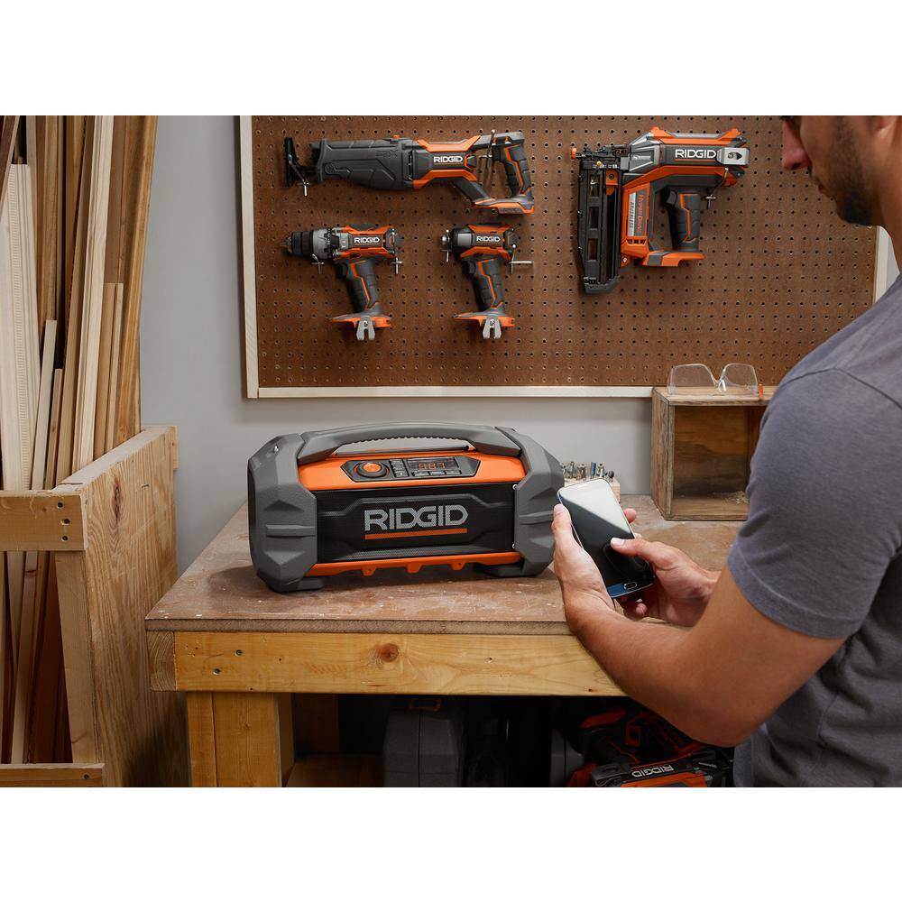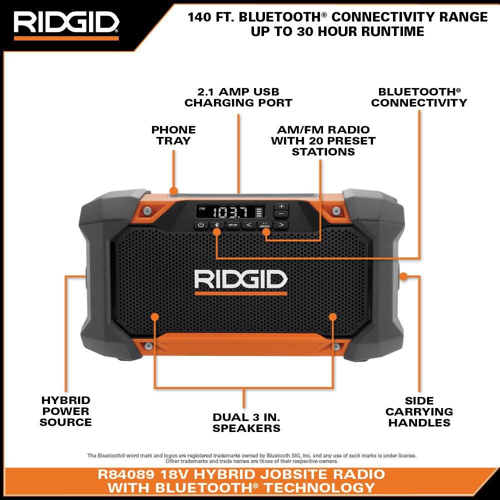 RIDGID R84087-AC87004 18V Hybrid Jobsite Radio with Bluetooth Wireless Technology with 18V Lithium-Ion 4.0 Ah Battery
