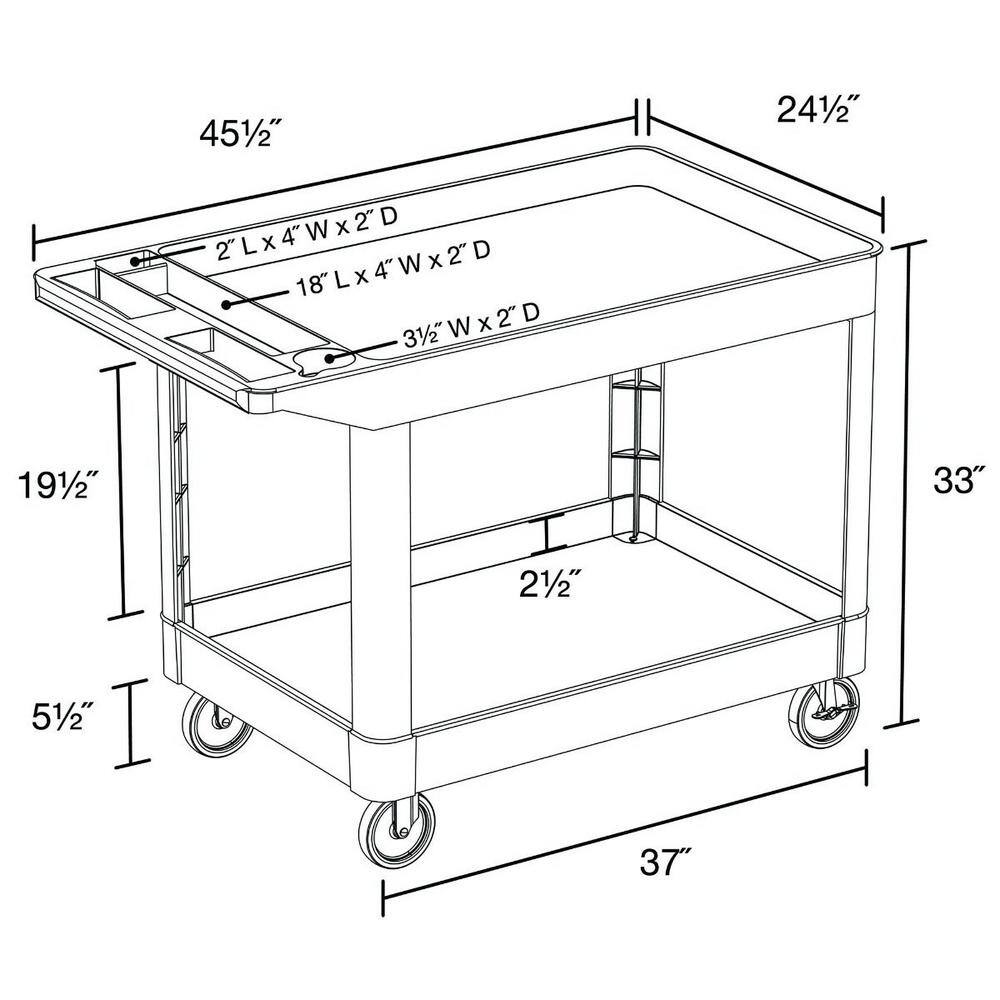 Luxor XLC11-B 24 in. x 45 in. Two Shelf Heavy Duty Cart in Black