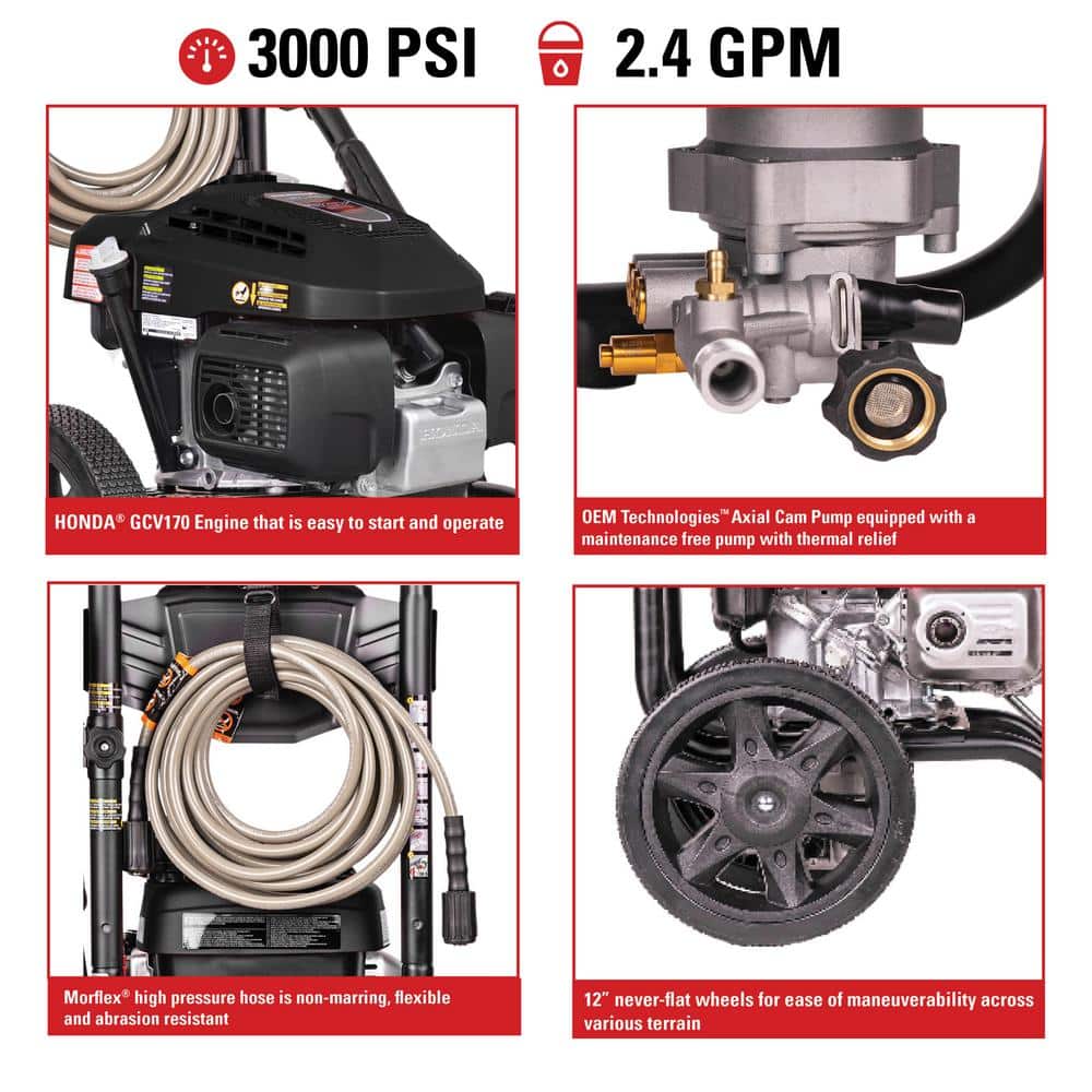 SIMPSON MS60809 MegaShot 3000 PSI 2.4 GPM Gas Cold Water Pressure Washer with HONDA GCV170 Engine