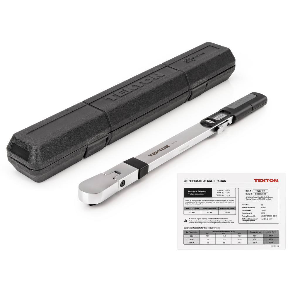 TEKTON TRQ62103 3/8 in. Drive 72-Tooth Split Beam Torque Wrench (20-100 ft./lbs.)