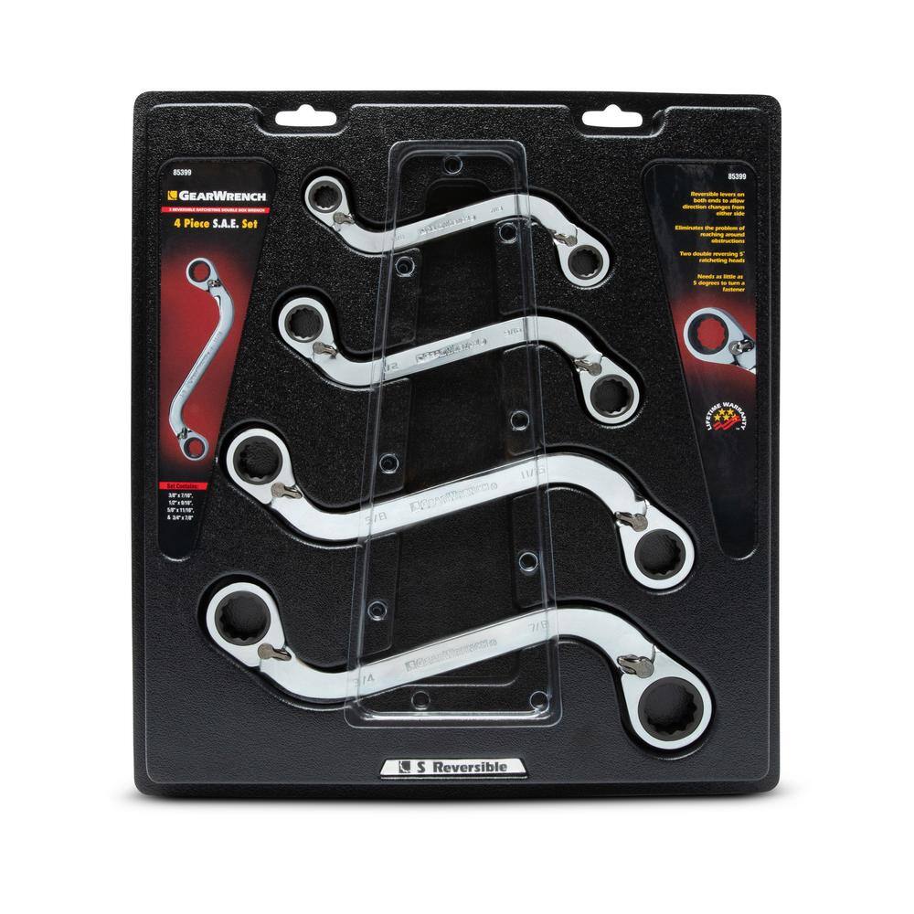 GEARWRENCH 85399 72-Tooth 12 Point SAE Reversible S-Shape Double Box Ratcheting Wrench Set (4-Piece)
