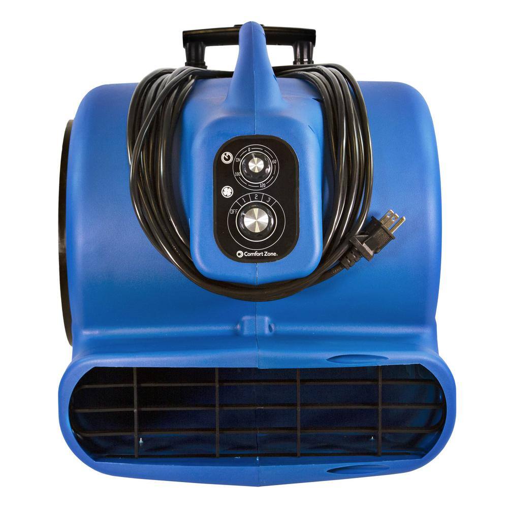 Comfort Zone CZBC121T 1/2 HP High Velocity Air Mover Carpet Dryer Blower Fan with Timer. Blue
