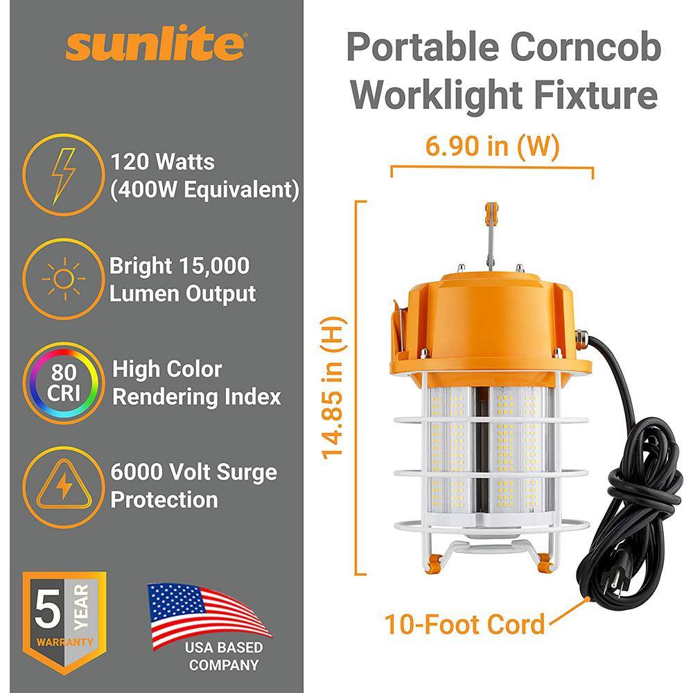 Sunlite HD02720-1 15.000 Lumens LED Portable 120-Watt Temporary Job Site Hanging LED Work Light with 320° Light and 10 ft. Power Cord