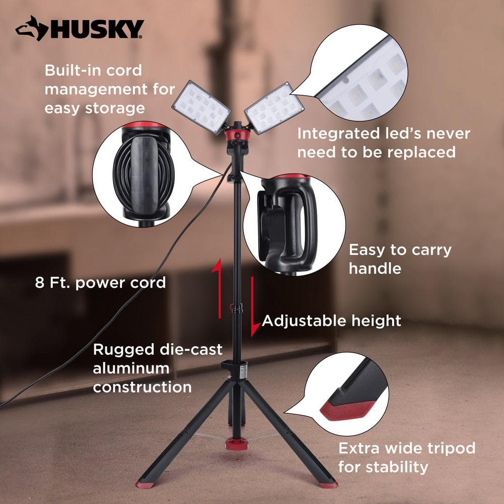 Husky 7901304012 7000 Lumens Portable Corded LED Work Light with Tripod
