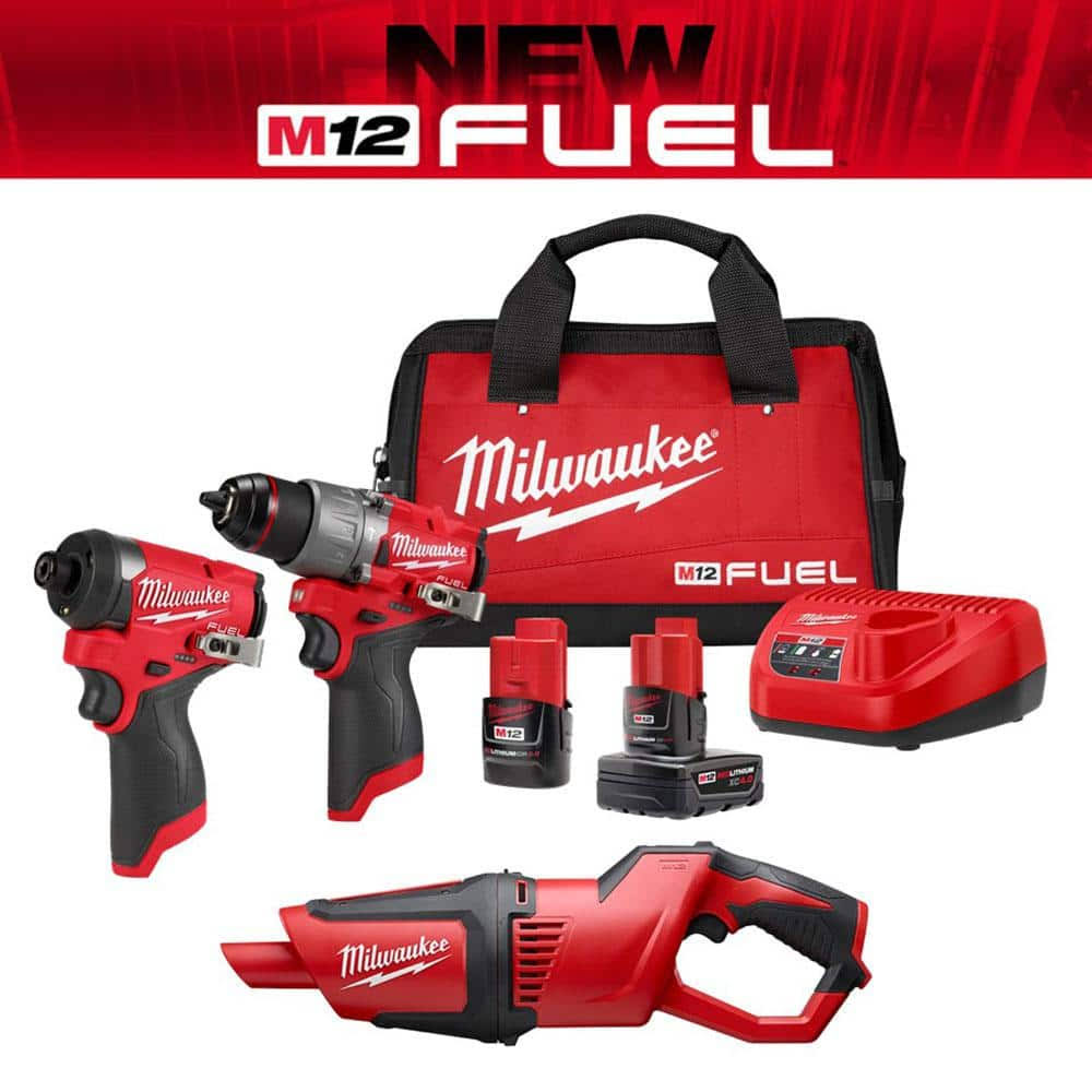 Milwaukee M12 Fuel 12-Volt Lithium-Ion Brushless Cordless Hammer Drill and Impact Driver Combo Kit with Compact Vacuum #3497-22-0850-20