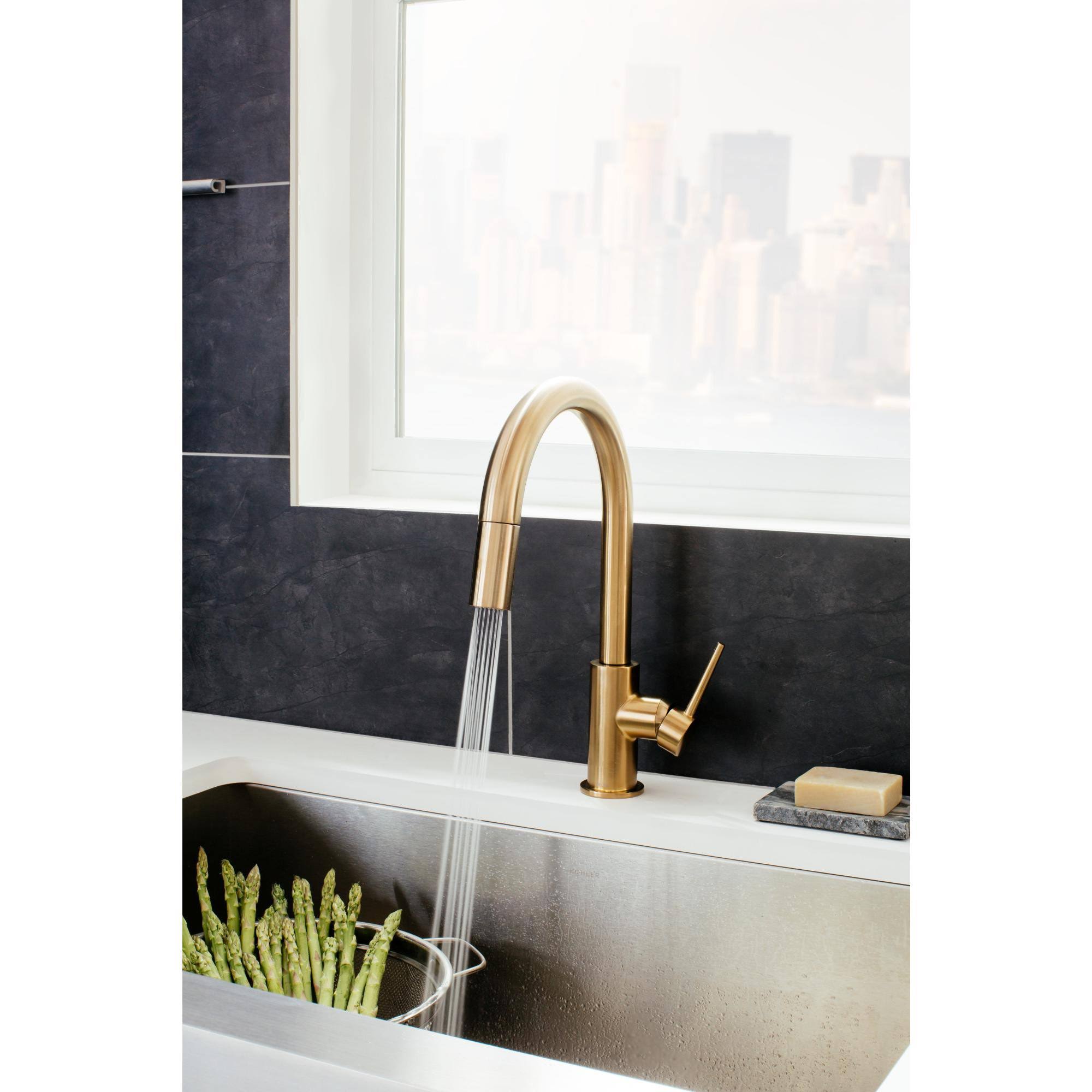 Delta 9159-KS-DST Trinsic Single Handle Pull-Down Kitchen Faucet, Black Stainless