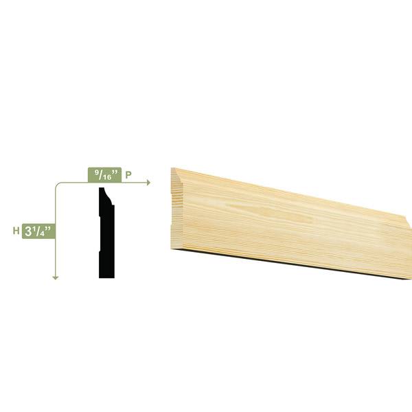 9/16-in x 3.25-in x 8-ft Unfinished Pine Baseboard Moulding WM623