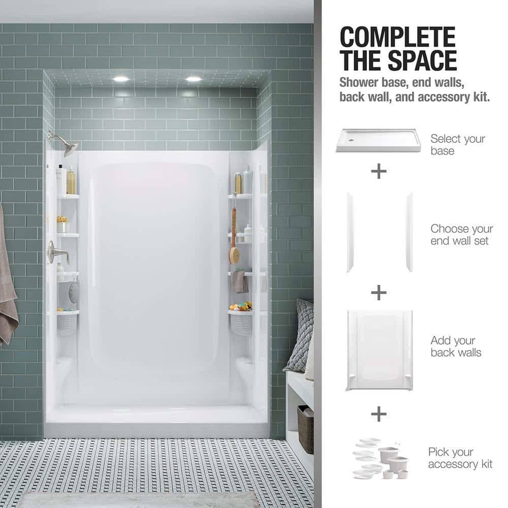 Sterling Store+ 30 in. x 60 in. Single Threshold Left-Hand Shower Base with Shower Walls and 10-Piece Accessory Kit in White