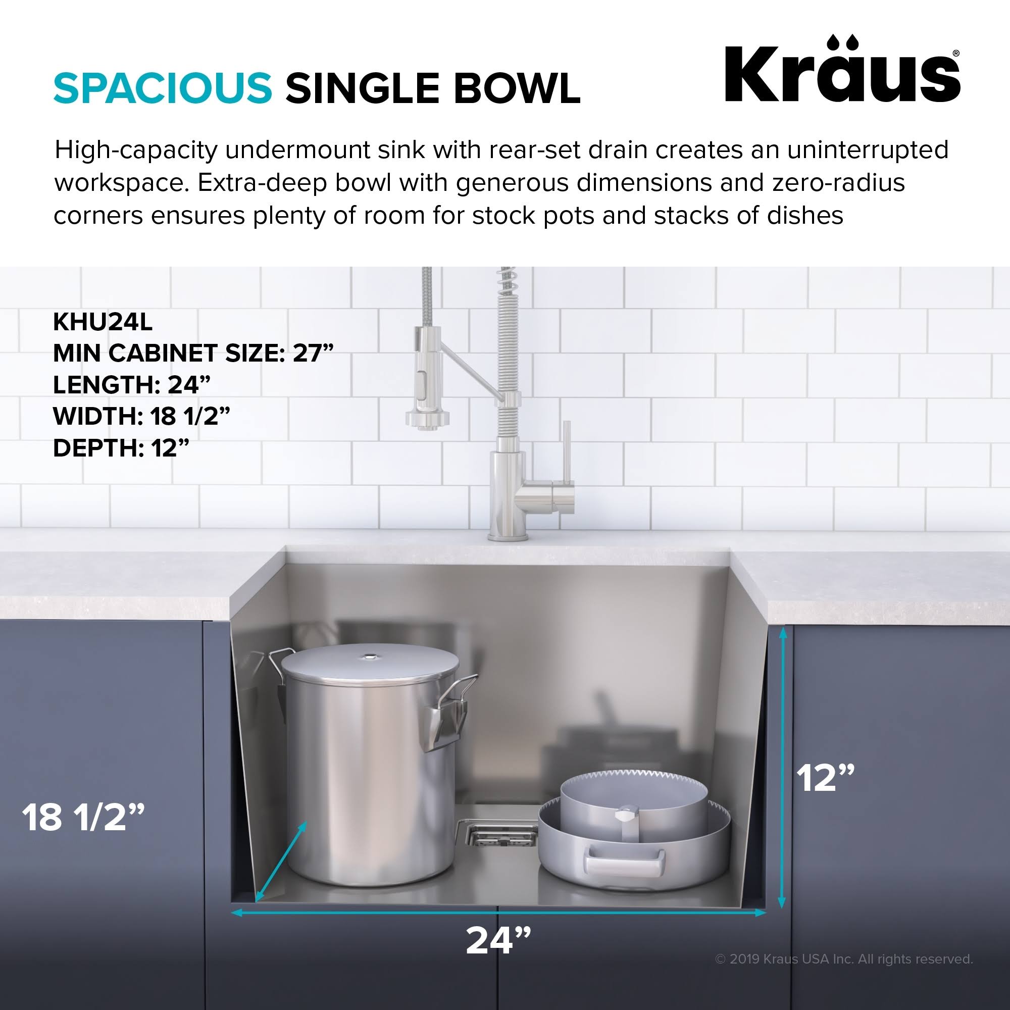 Kraus Pax Rectangular Undermount Stainless Steel Laundry Utility Sink, Silver