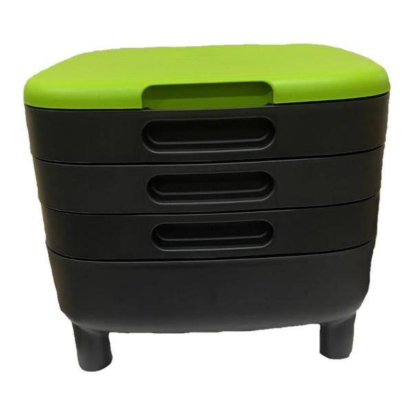 Maze RSI-MC-WORM3-SWL 6 Gal. Stationary 3 Tray Worm Compost Farm with Wooden Leg Extensions and 141 oz. 16 in. Round Steel Compost Sifter