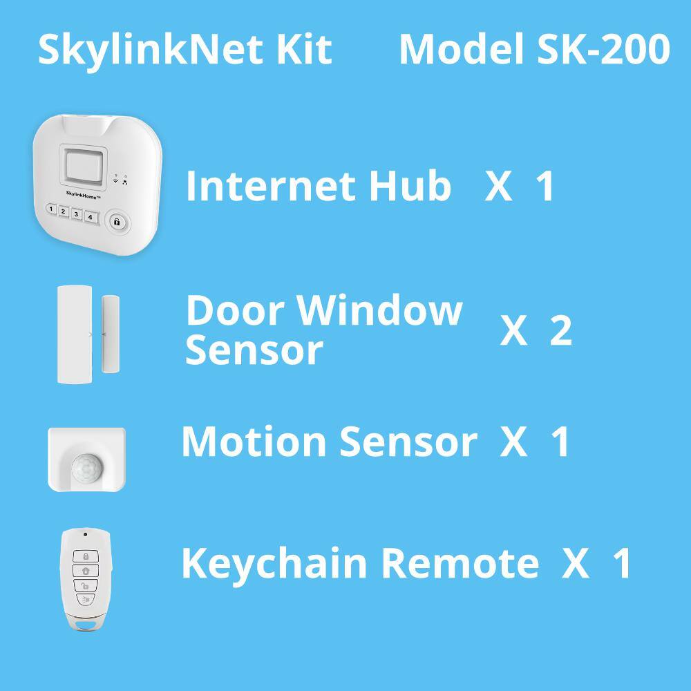 SkyLink SK-220 Wireless Home Alarm Kit No Monthly Fees with Hub. Door Window Sensors. Motion Sensor. Keypad and Keyfob (8-Piece)