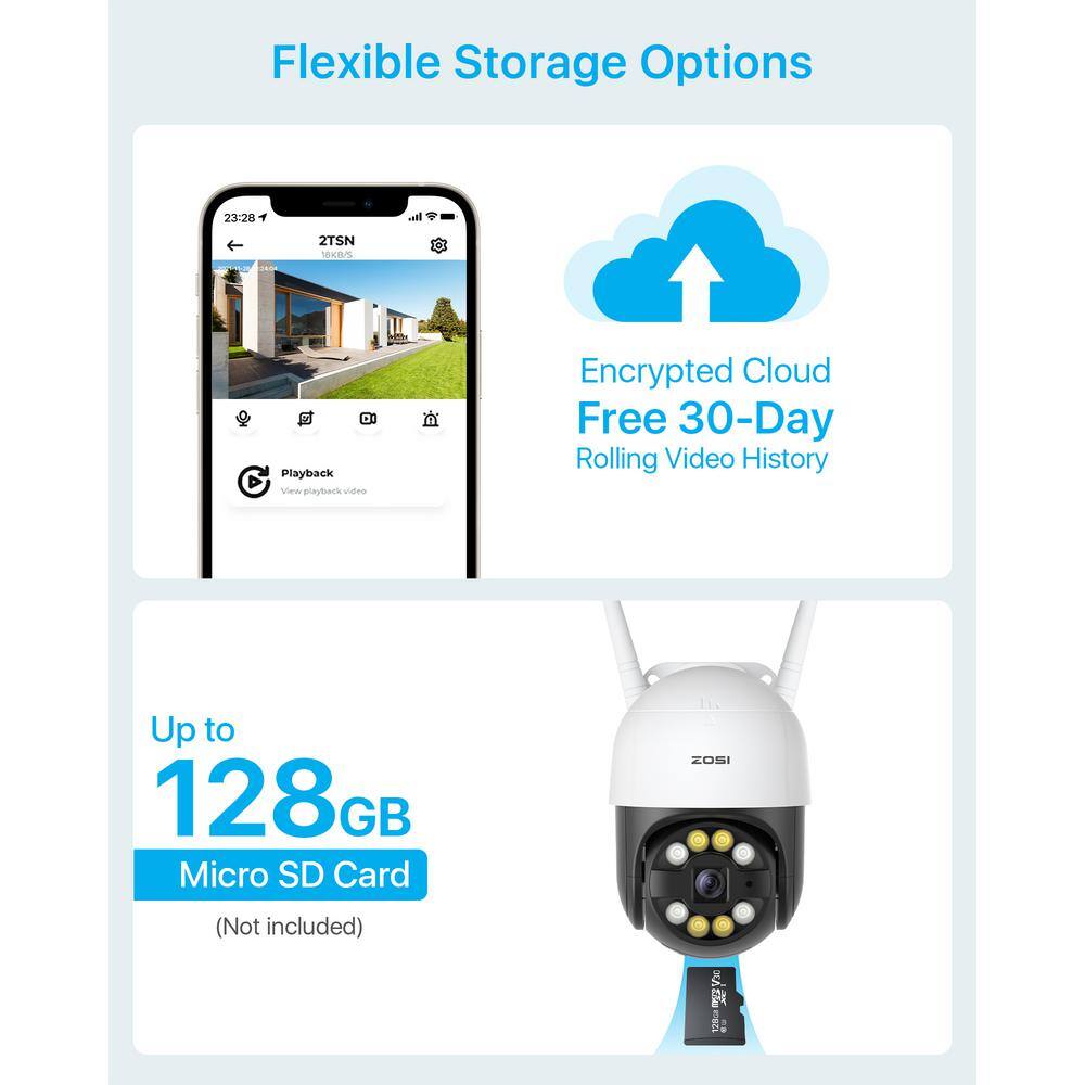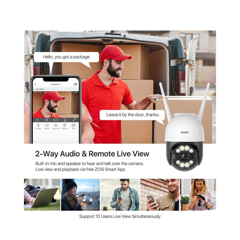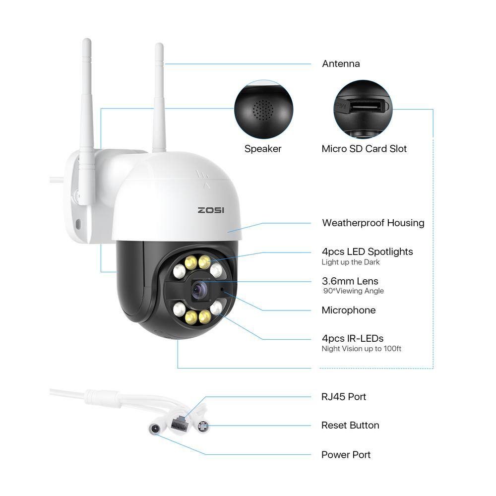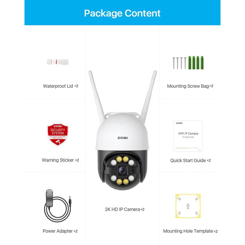 ZOSI 2NC-2893Y-W-US-A2 Smart 3MP 2K Outdoor Security Camera. 365-Degree Pan/Tilt Wireless Surveillance Camera. Human Detection. 2-Way Audio