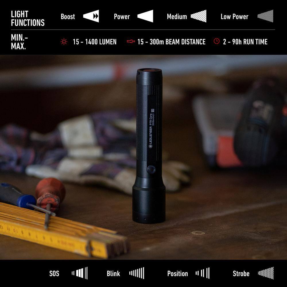 LEDLENSER P7R Core P7R Core Rechargeable Flashlight. 1400 Lumens. Advanced Focus System. Constant Light Output. Waterproof