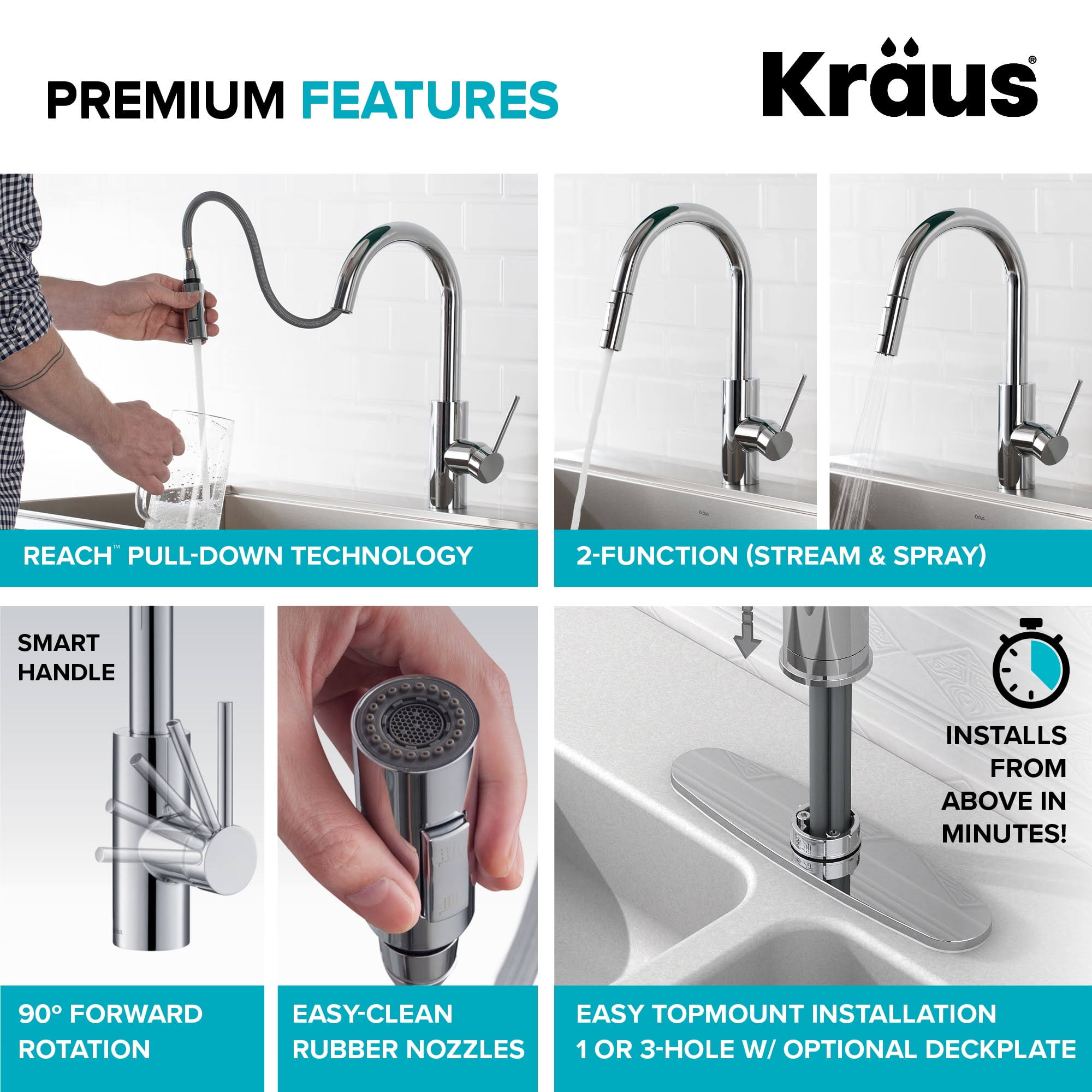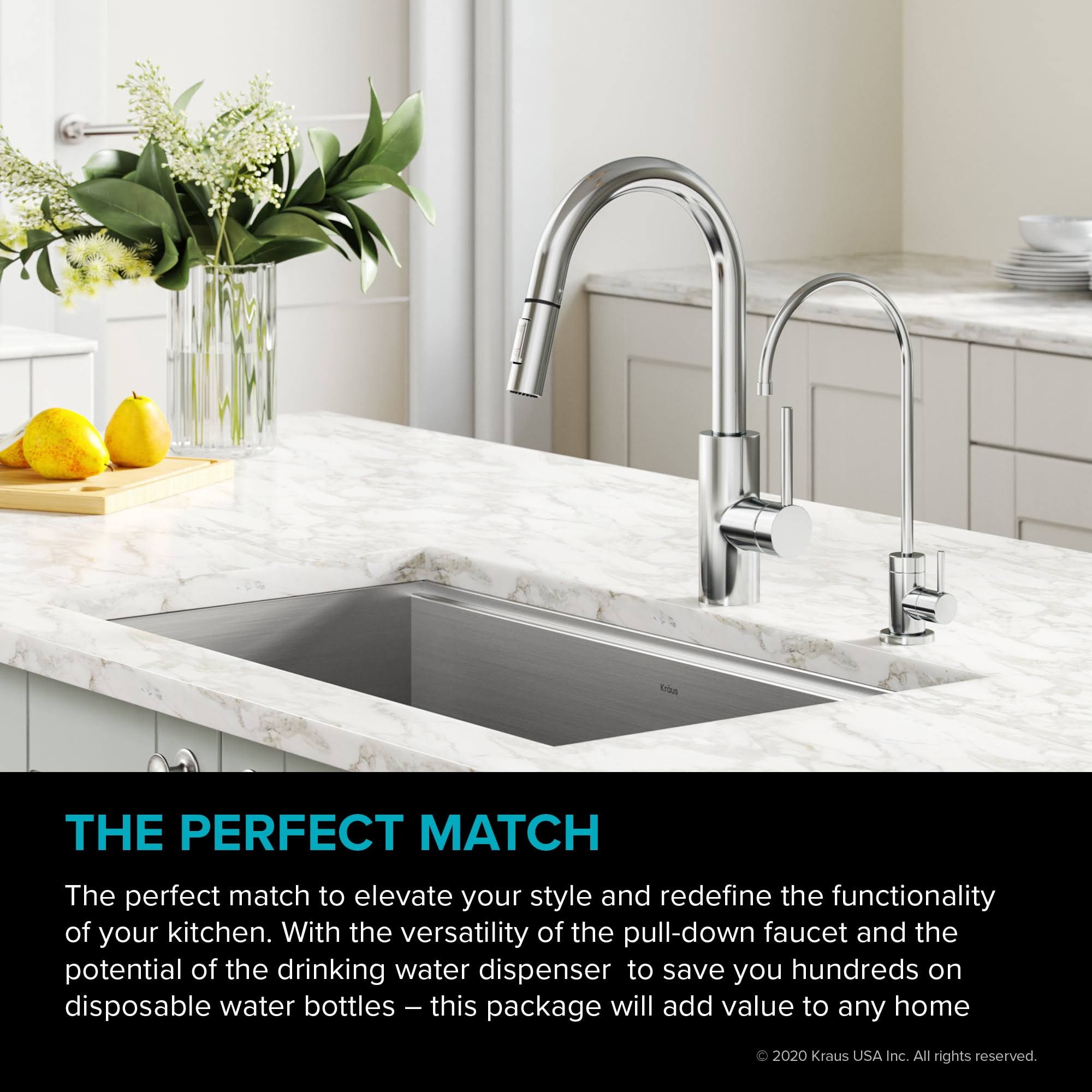 Kraus Oletto Pull-Down Kitchen Faucet and Purita Water Filter Faucet Combo- Chrome KPF-2620-FF-100CH