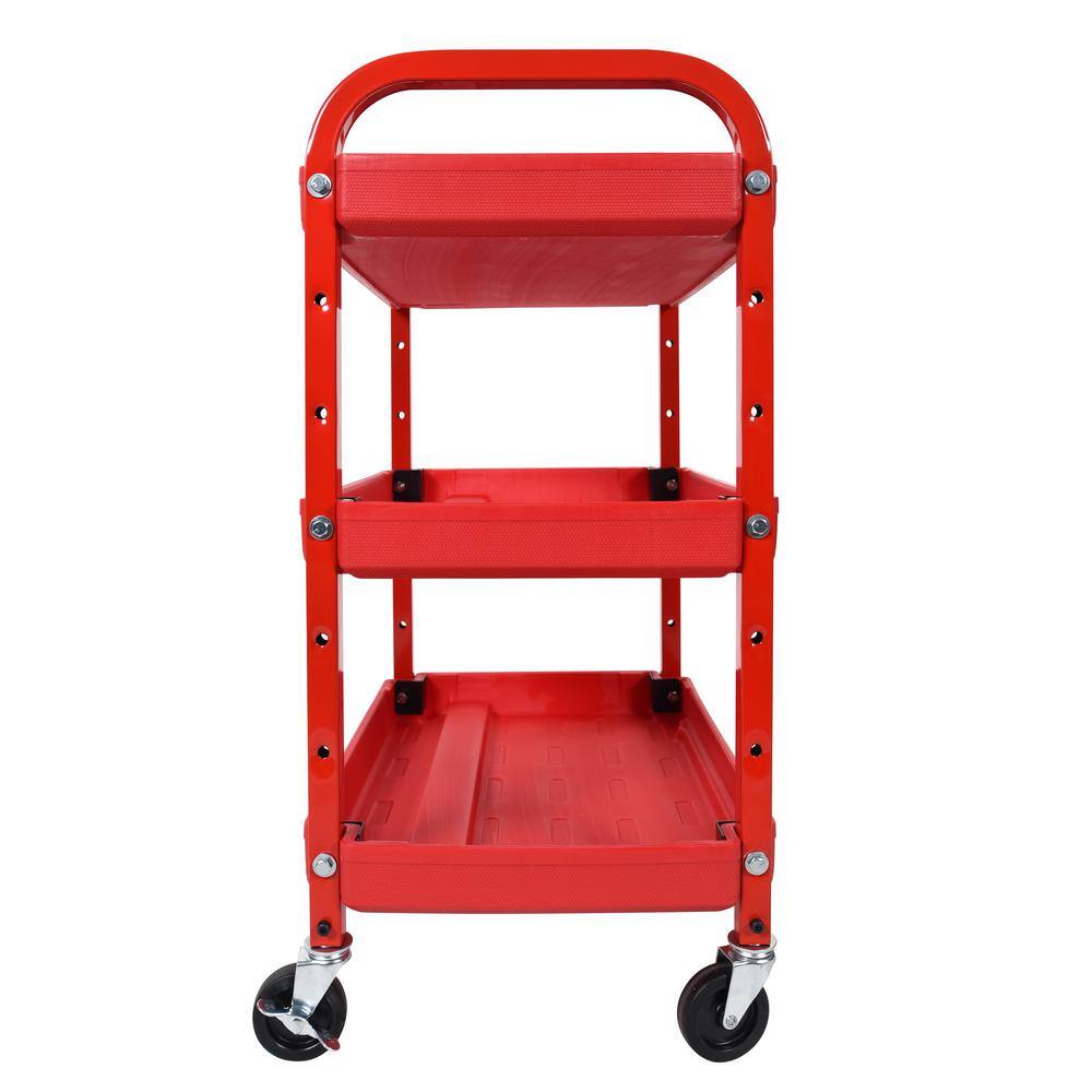 Luxor SC13-B 40.5 in. 3 Flat Shelves Utility Cart in Black with Silver Poles