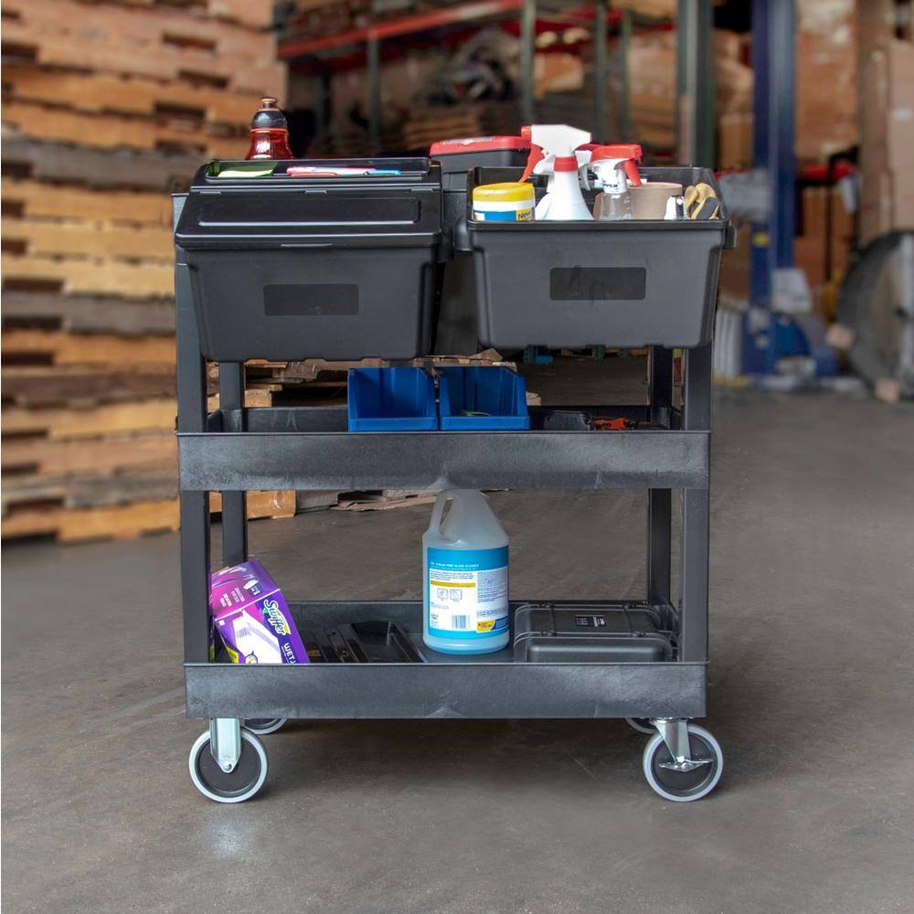 Suncast Commercial PUCHD2645 Heavy-Duty 26.5 in. 2-Shelf Utility Cart in Black