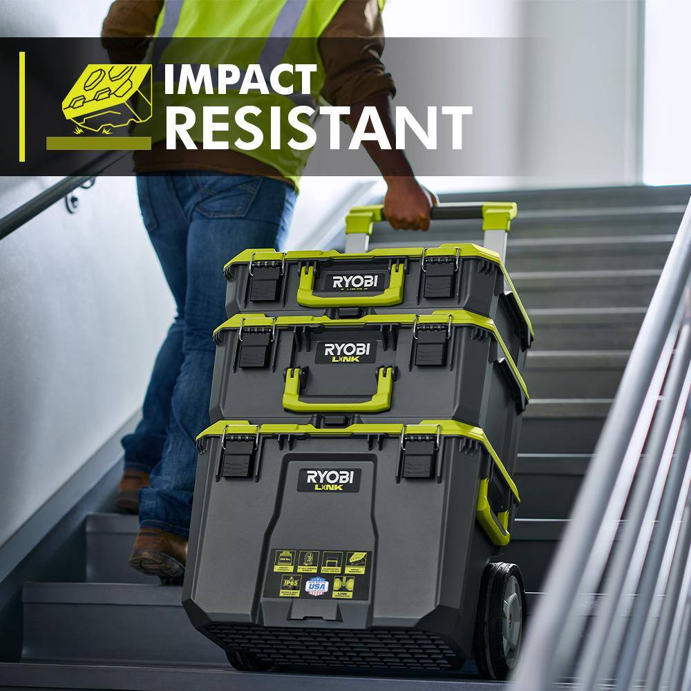 RYOBI STM201-STM102 LINK Rolling Tool Box with LINK Medium Tool Box
