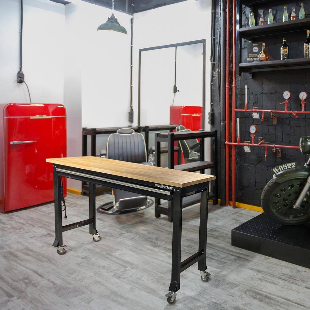 Frontier WB602201 5 ft. Workbench with Rubber Wood Top. Single Drawer and Casters