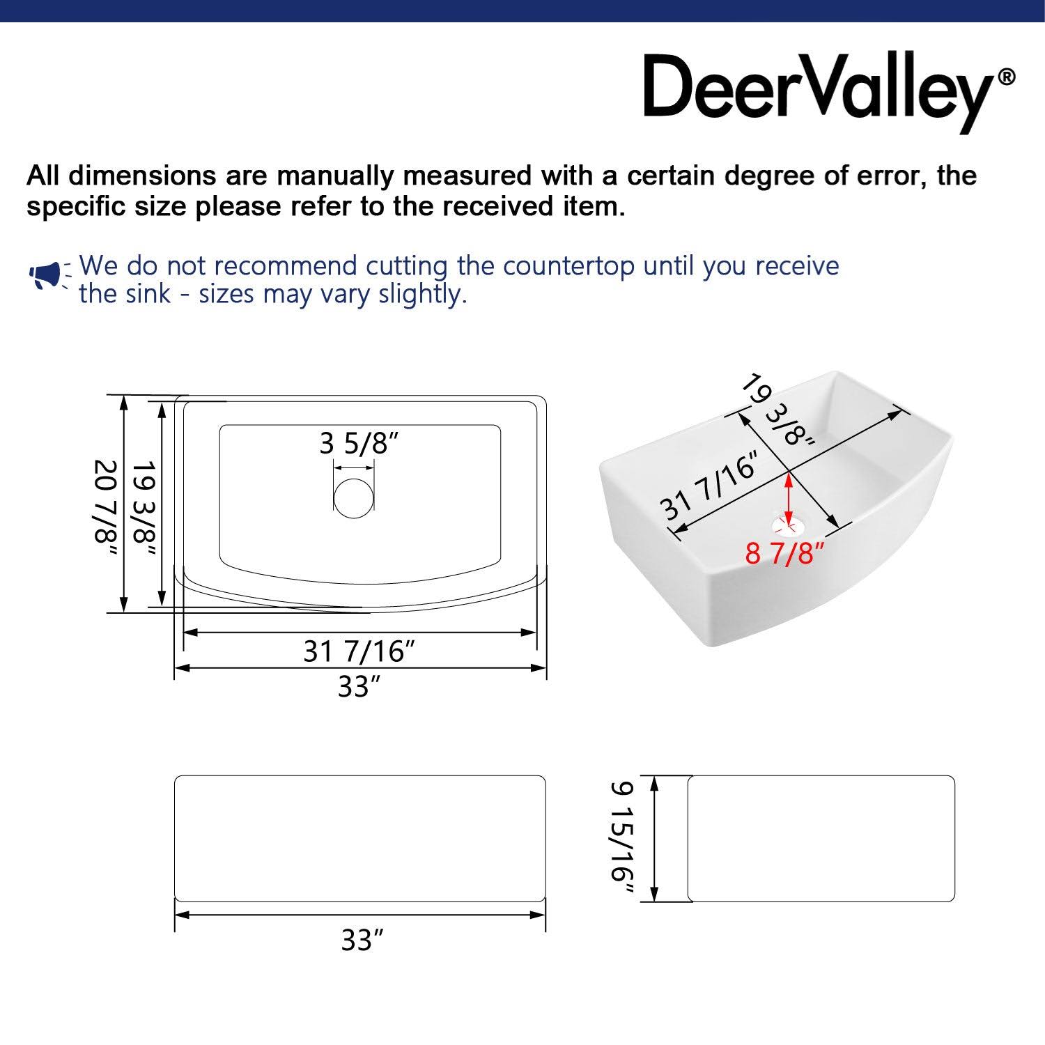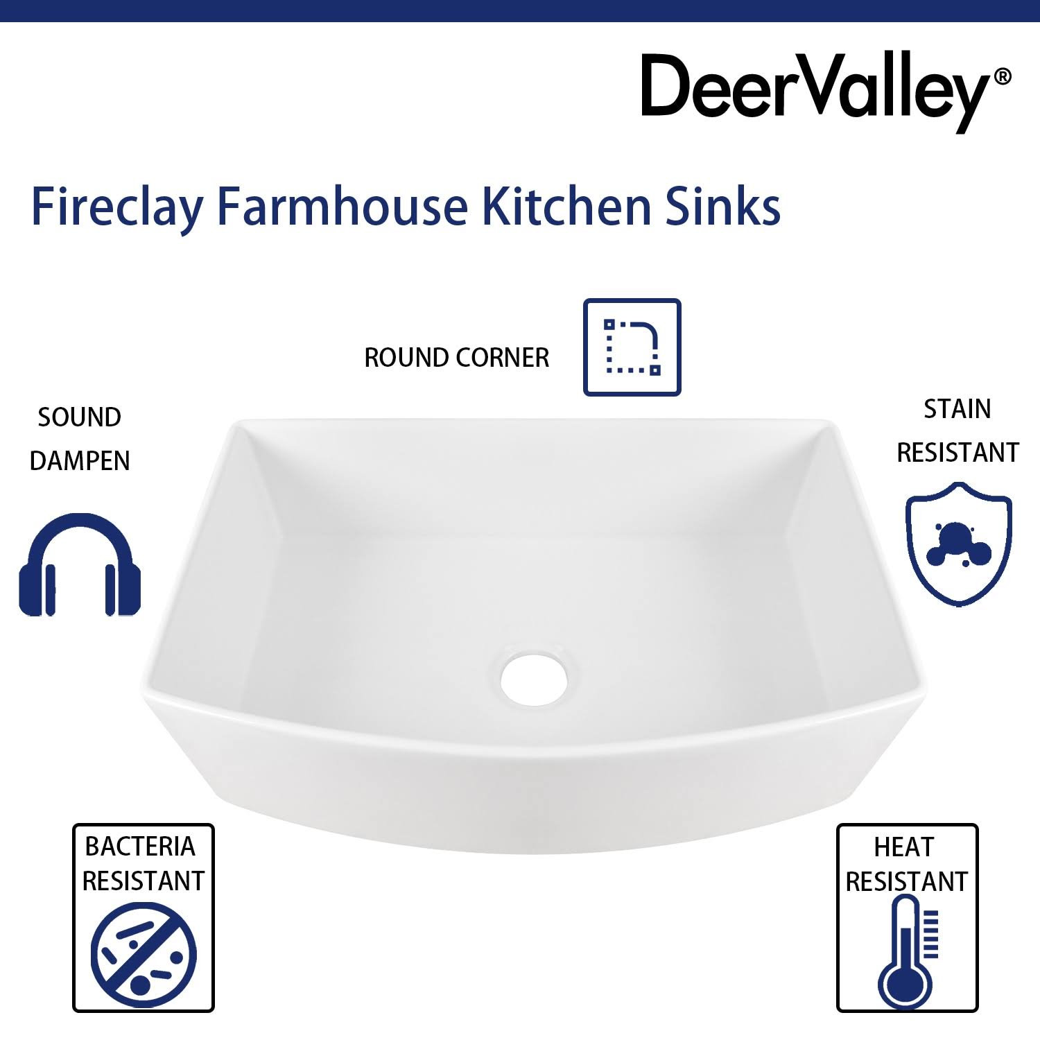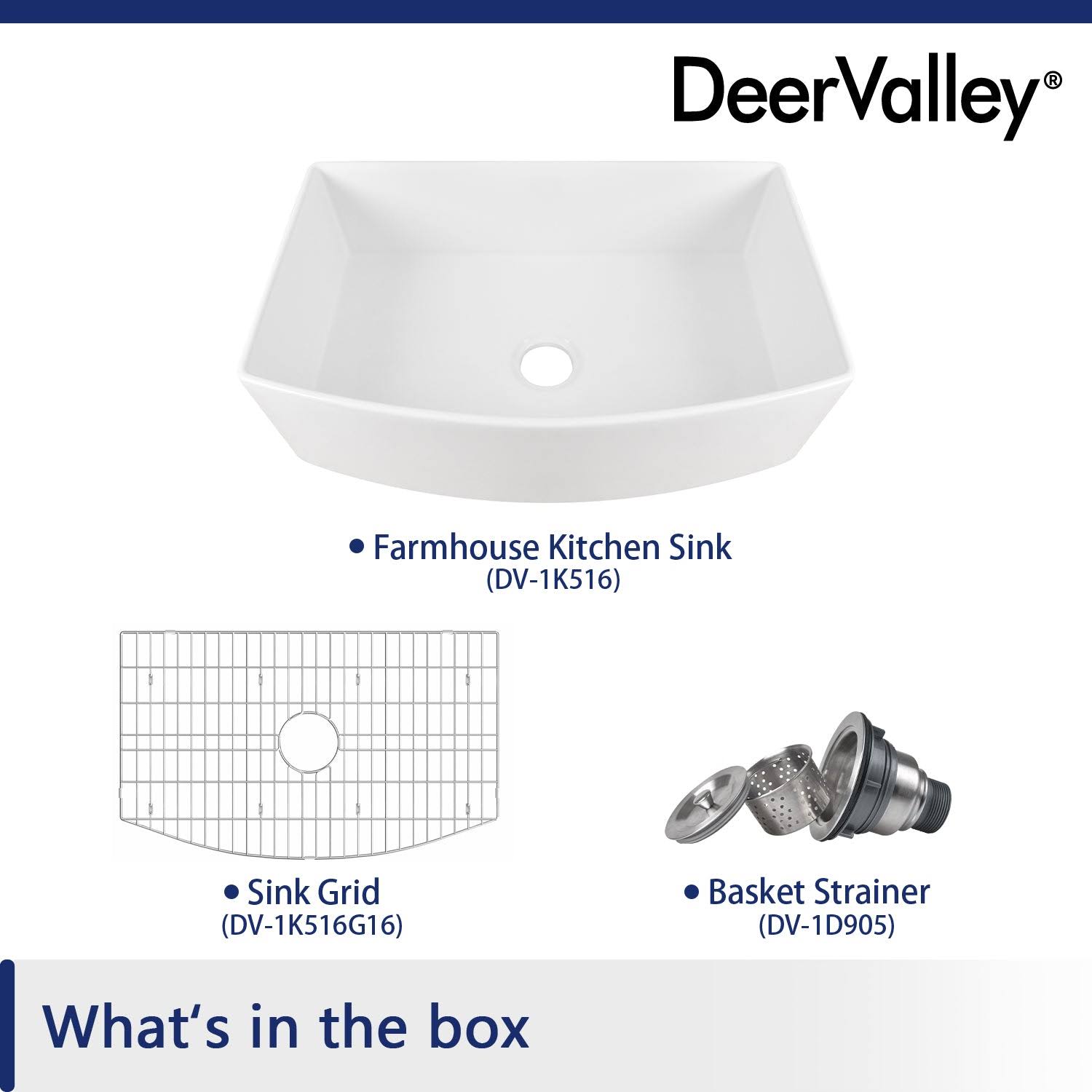 DeerValley DV-1K516 Fireclay 33" L x 21" W Farmhouse Kitchen Sink with Sink Grid