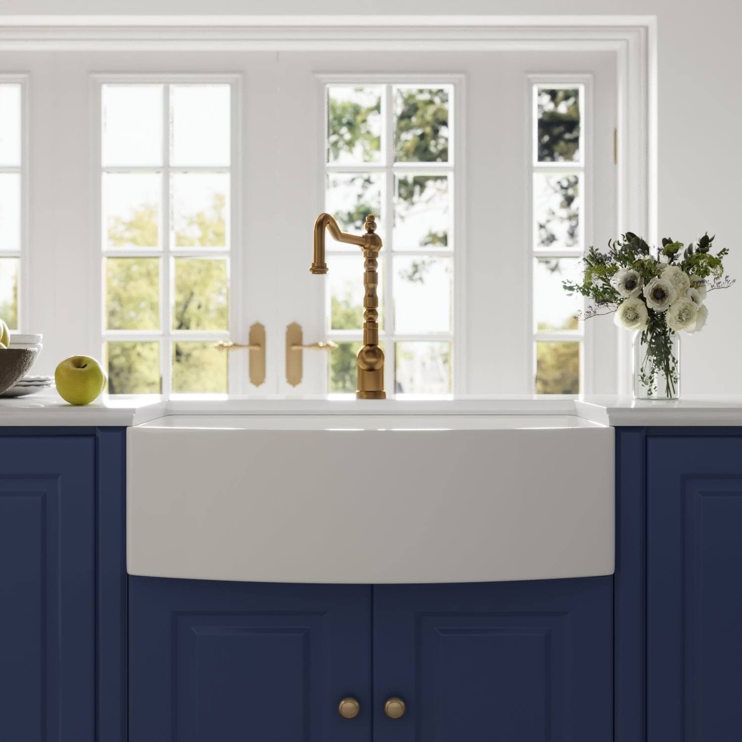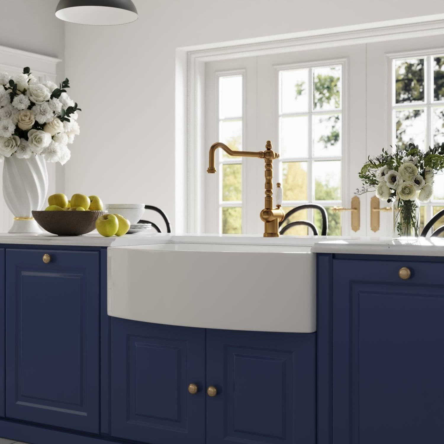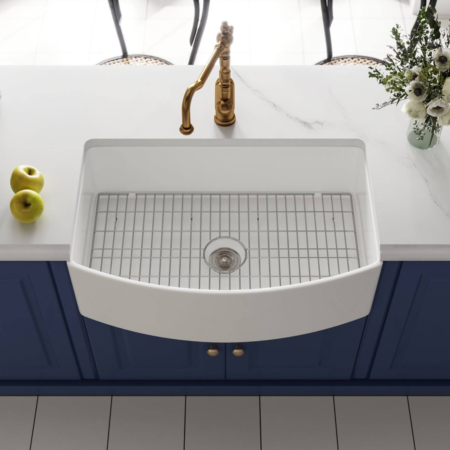 DeerValley DV-1K516 Fireclay 33" L x 21" W Farmhouse Kitchen Sink with Sink Grid