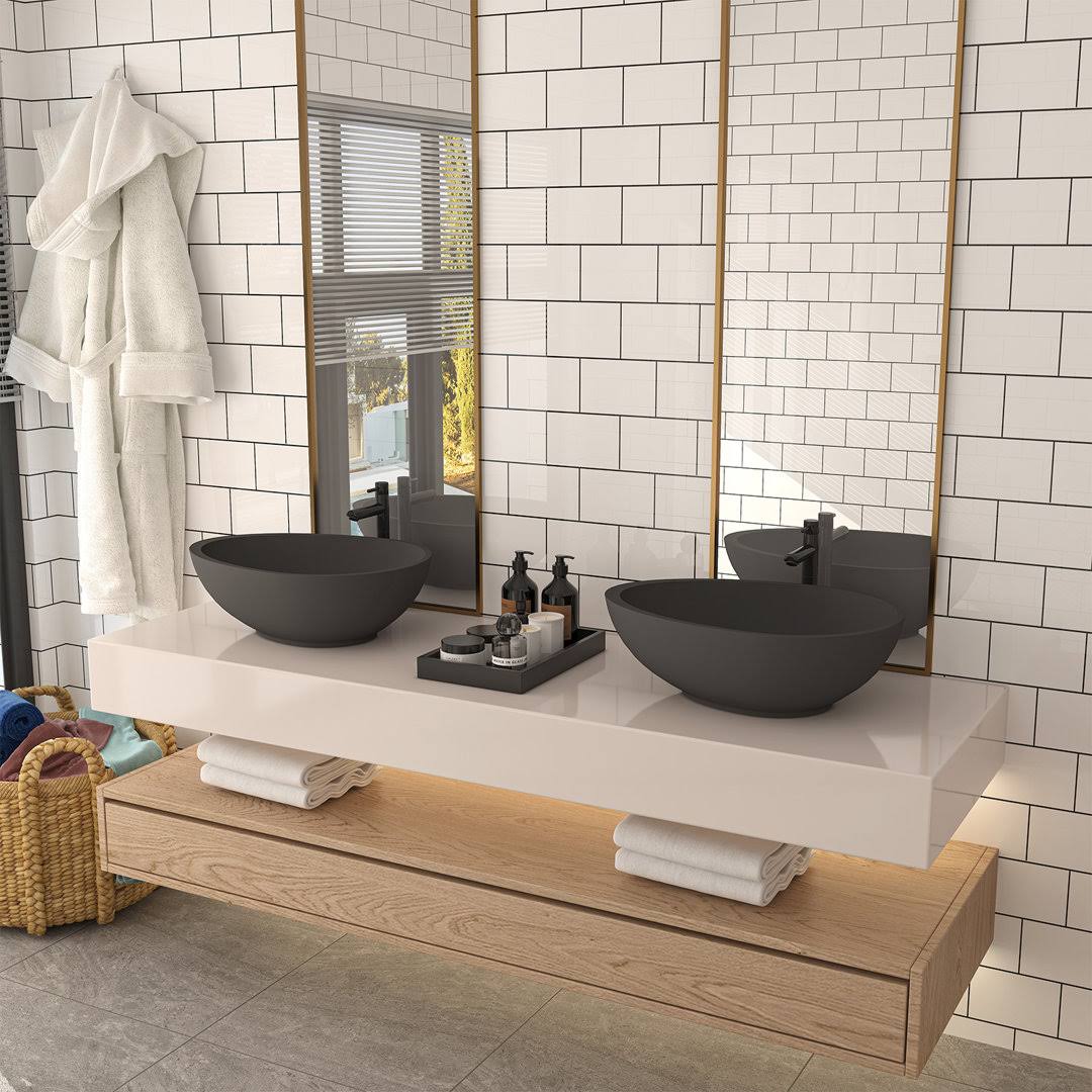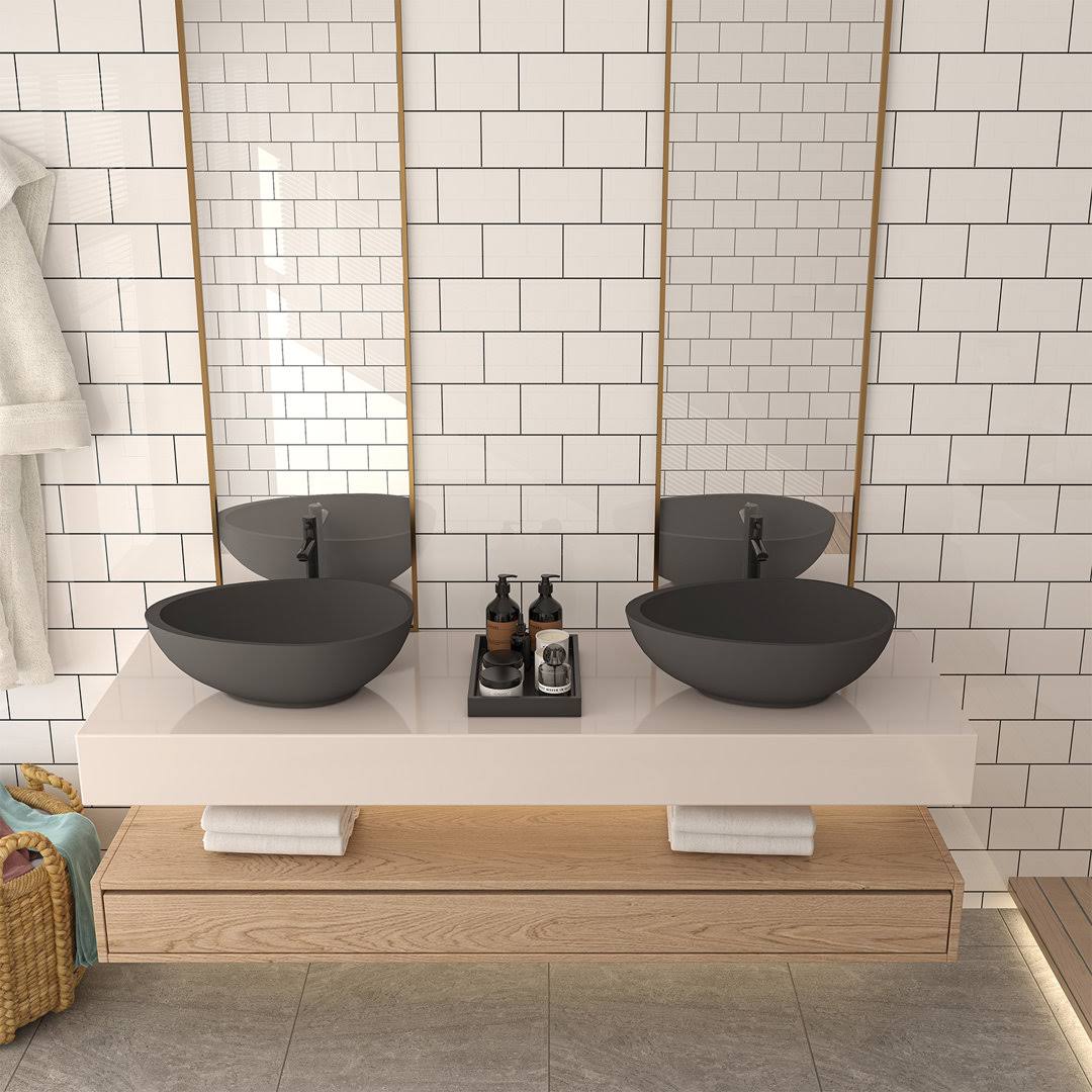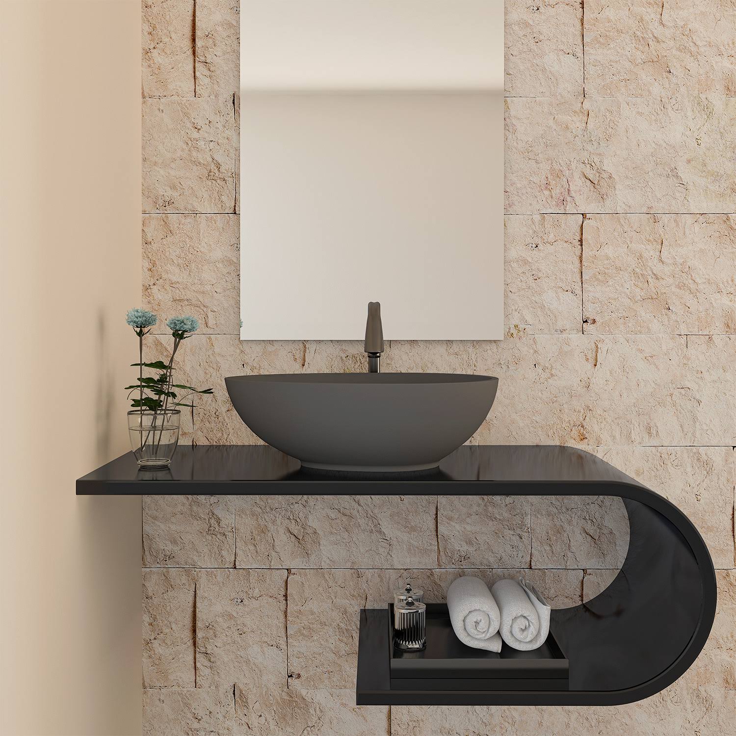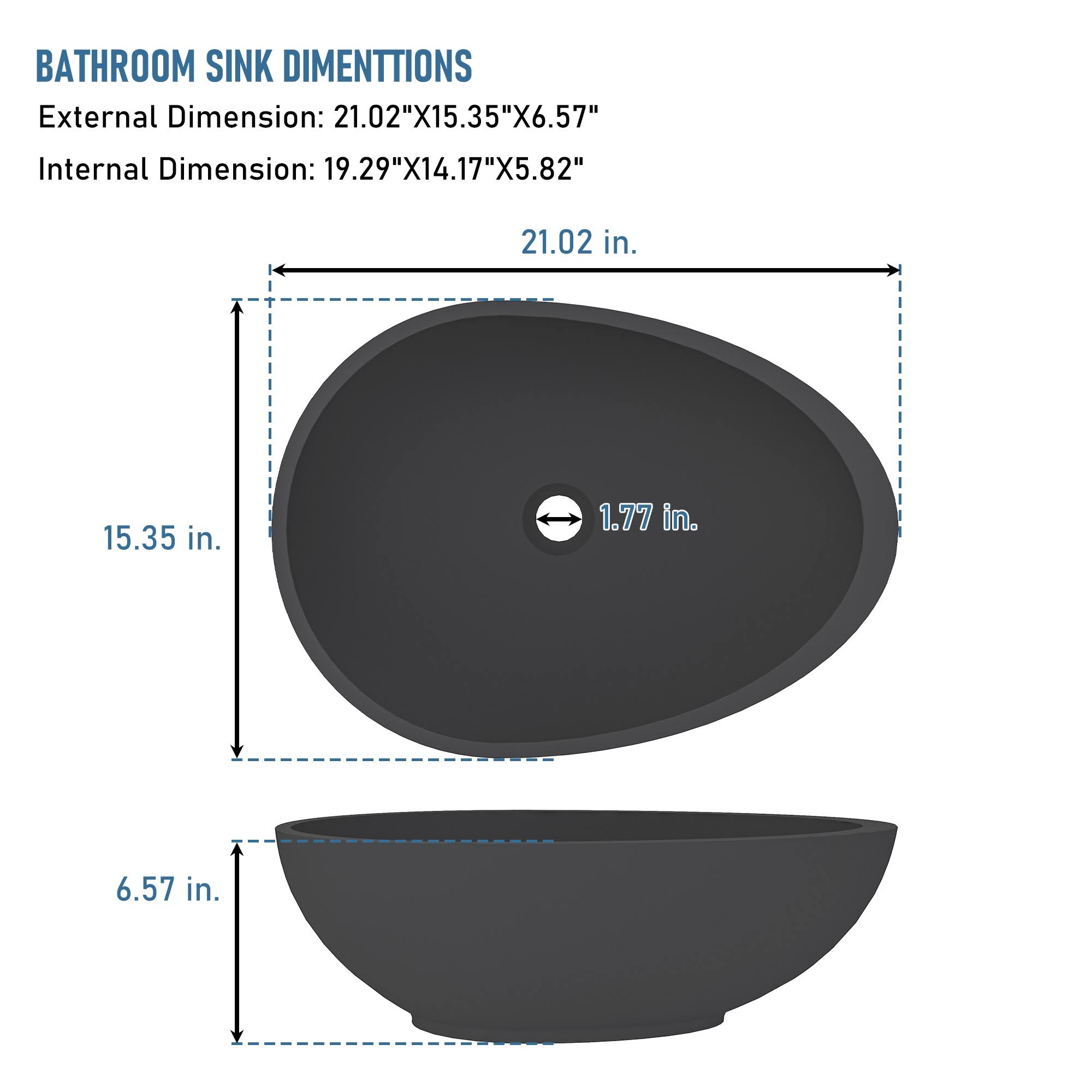 CASAINC 21in Bathroom Egg-Shaped Concrete Vessel Sink with Drainer in Black Earth / Mottled Bluish Grey / Blue Ashes