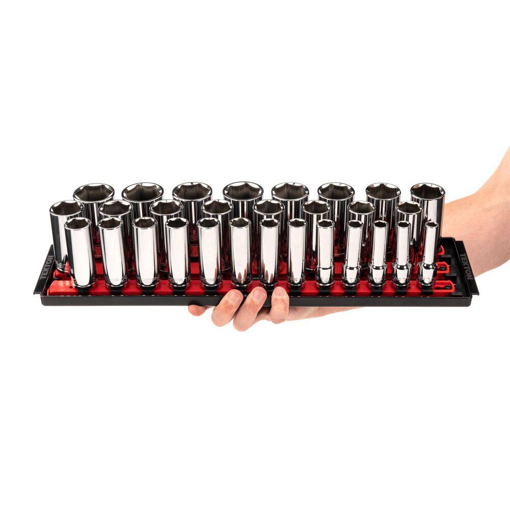 TEKTON SHD92125 1/2 in. Drive Deep 6-Point Socket Set. (29-Piece) (10-38 mm) with Rails