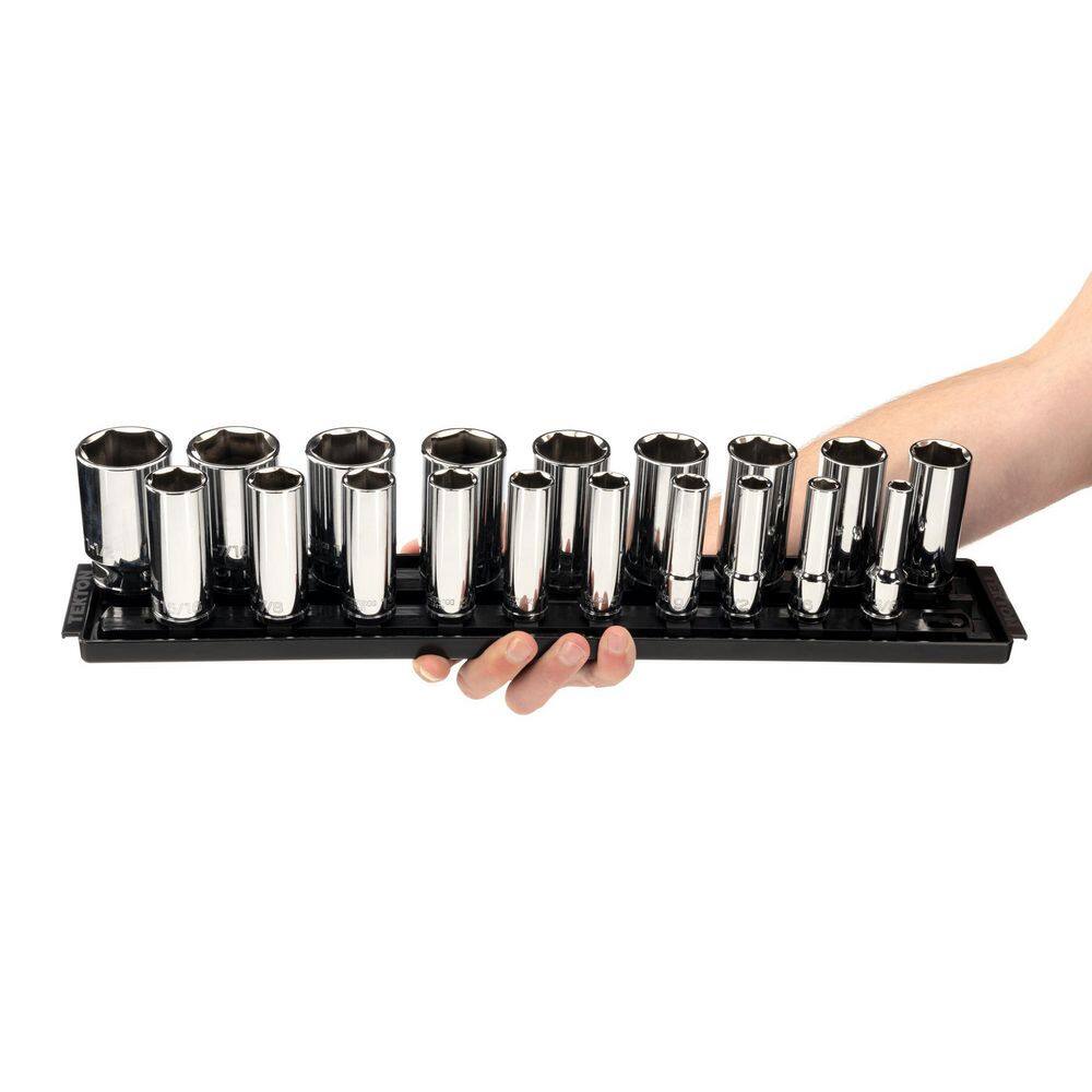 TEKTON SHD92123 1/2 in. Drive Deep 6-Point Socket Set. (19-Piece) (3/8 - 1-1/2 in.) with Rails