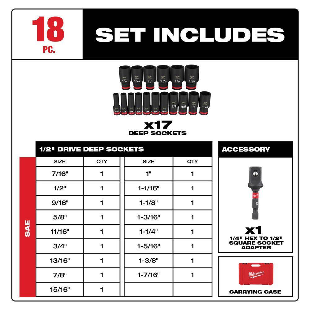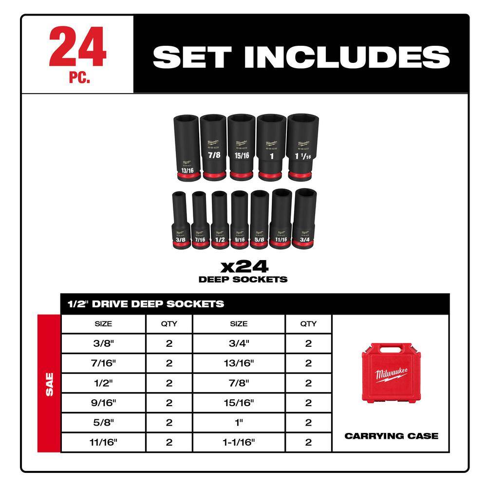 Milwaukee 49-66-6805 SHOCKWAVE Impact-Duty 3/8 in. Drive Metric and SAE Deep Well Impact PACKOUT Socket Set (36-Piece)