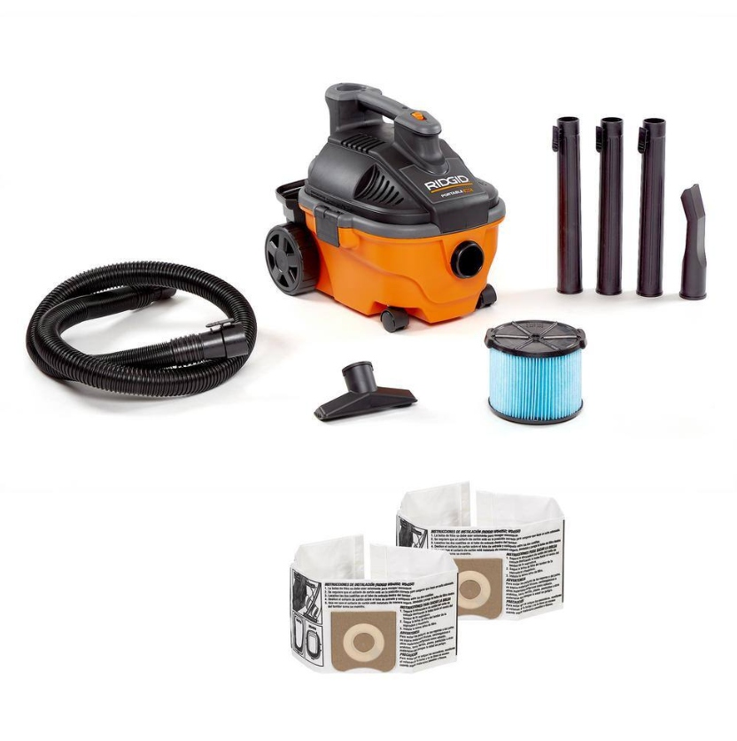 RIDGID WD4070D 4 Gallon 5.0 Peak HP Portable Wet/Dry Shop Vacuum with Fine Dust Filter. Dust Bags. Locking Hose and Accessories