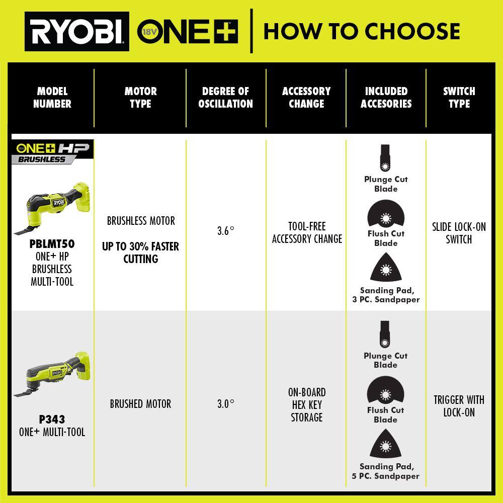 RYOBI PBLMT50B-A24402 ONE+ HP 18V Brushless Cordless Multi-Tool (Tool Only) with 4-Piece Wood and Metal Oscillating Multi-Tool Blade Set