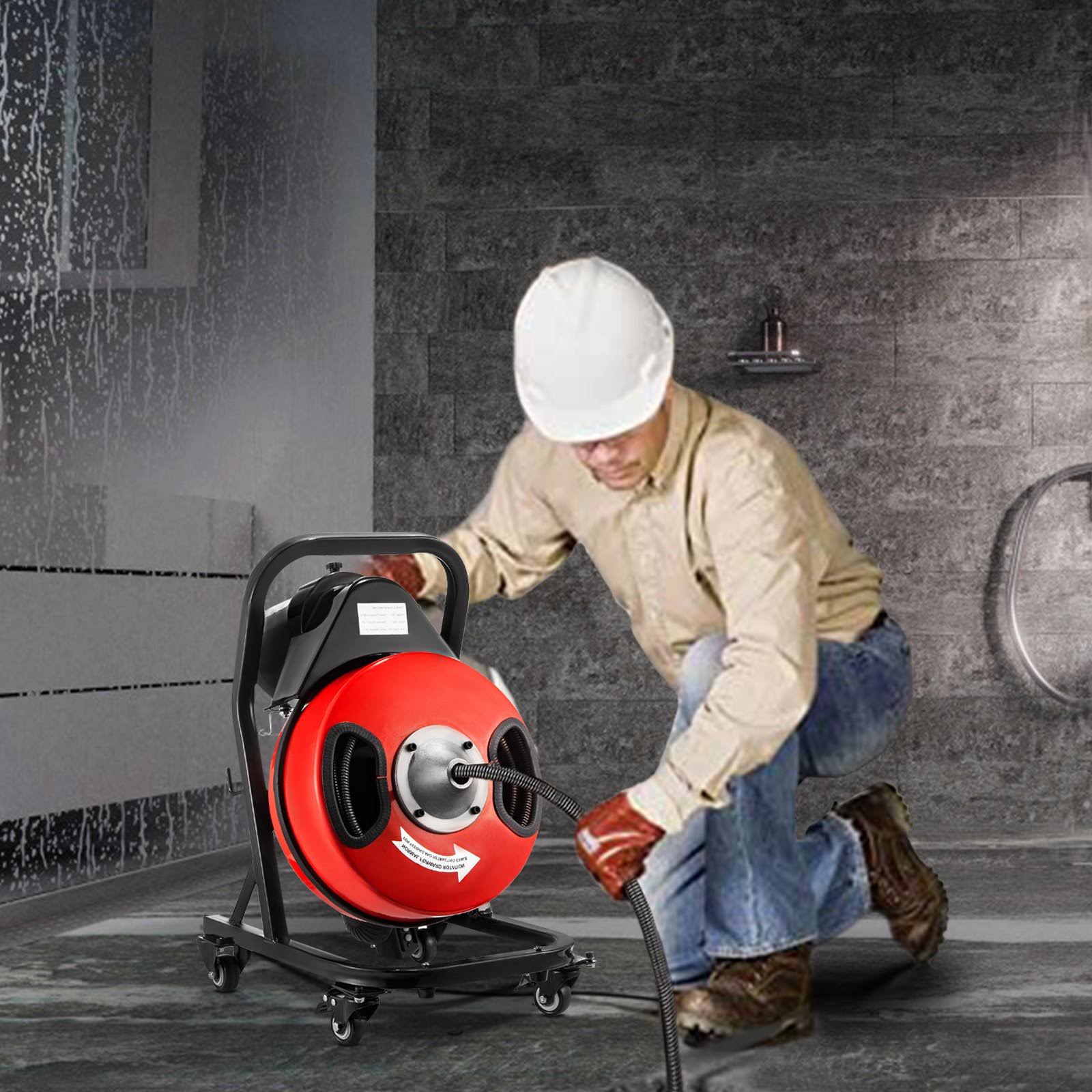 Vevorbrand Drain Cleaner Machine 50FTX1/2IN Sewer Snake Drain Auger Cleaner Electric Drain Cleaning Machine, Size: 2 in, Red