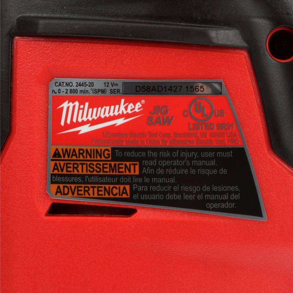 Milwaukee 2445-20-48-11-2420 M12 12V Lithium-Ion Cordless Jig Saw with M12 2.0Ah Battery