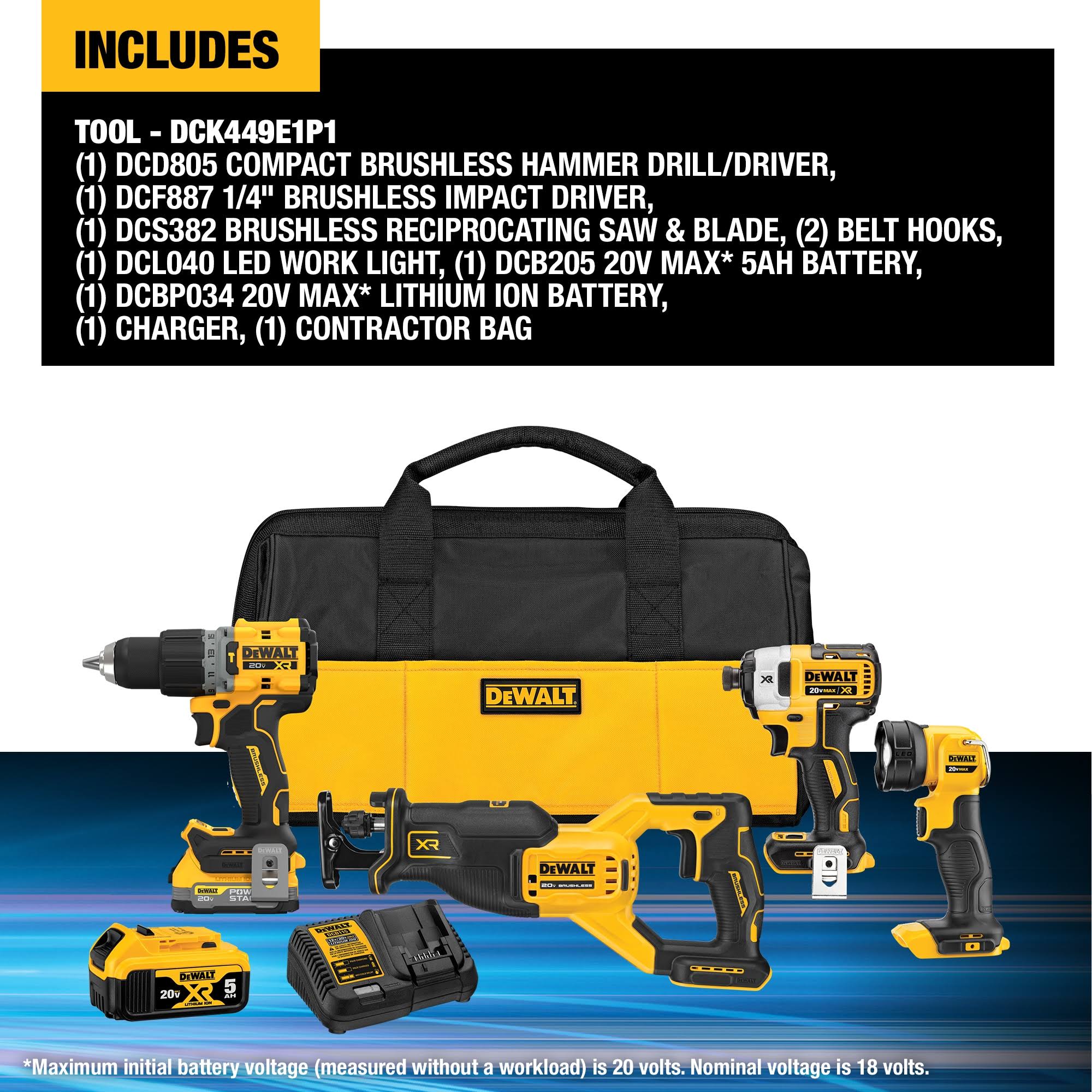 DeWalt 20V Max XR Brushless 4-Tool Combo Kit with Powerstack Battery