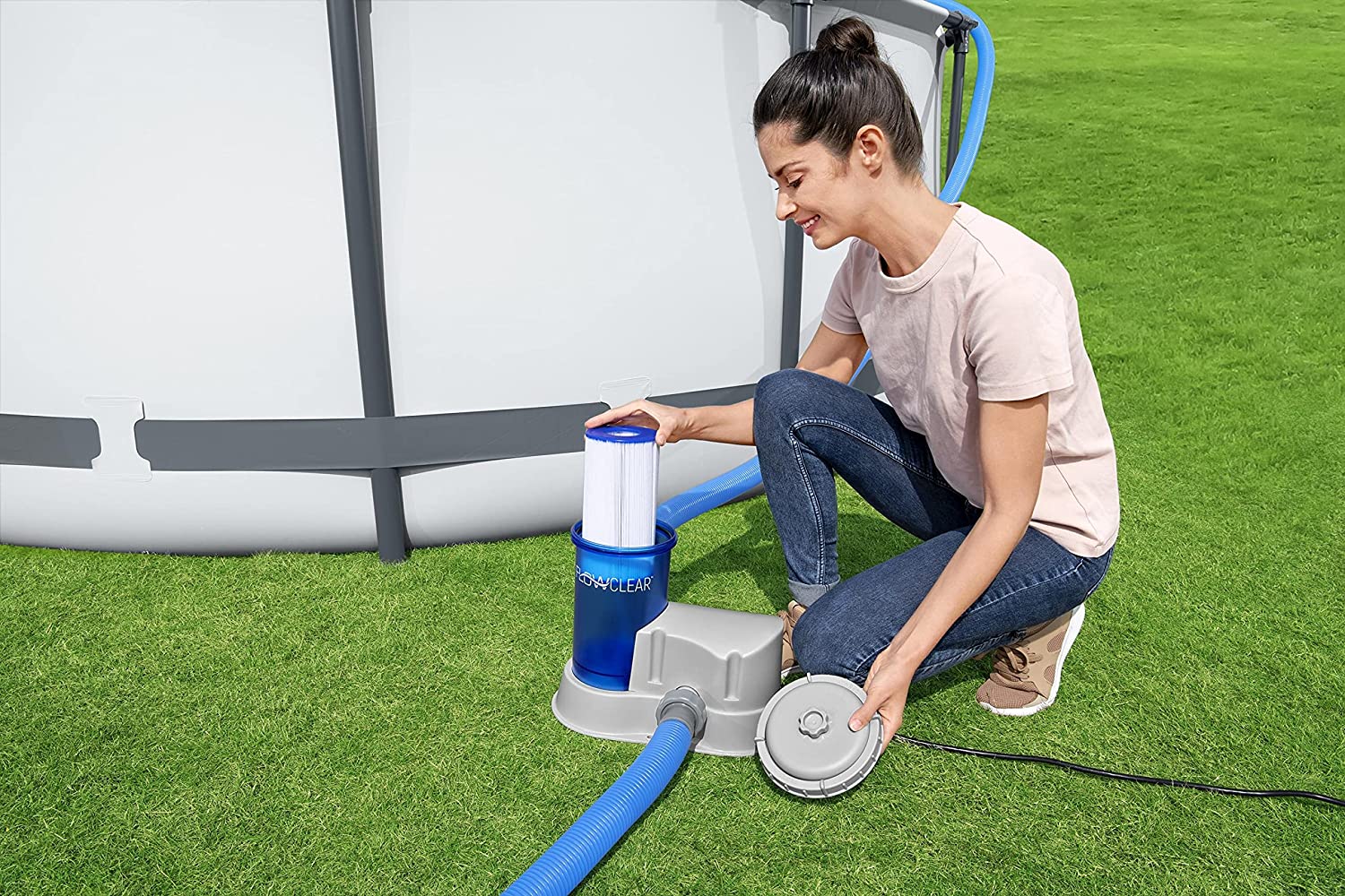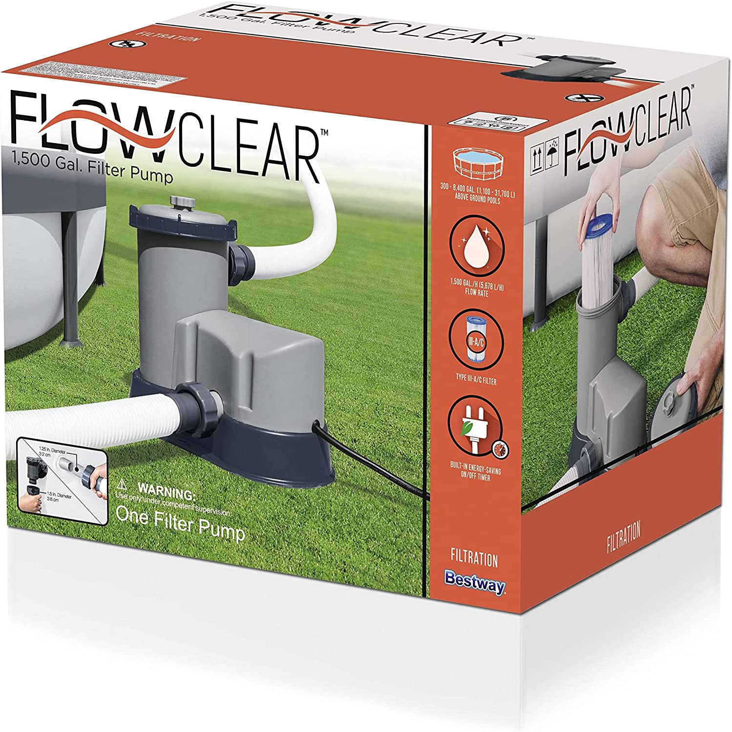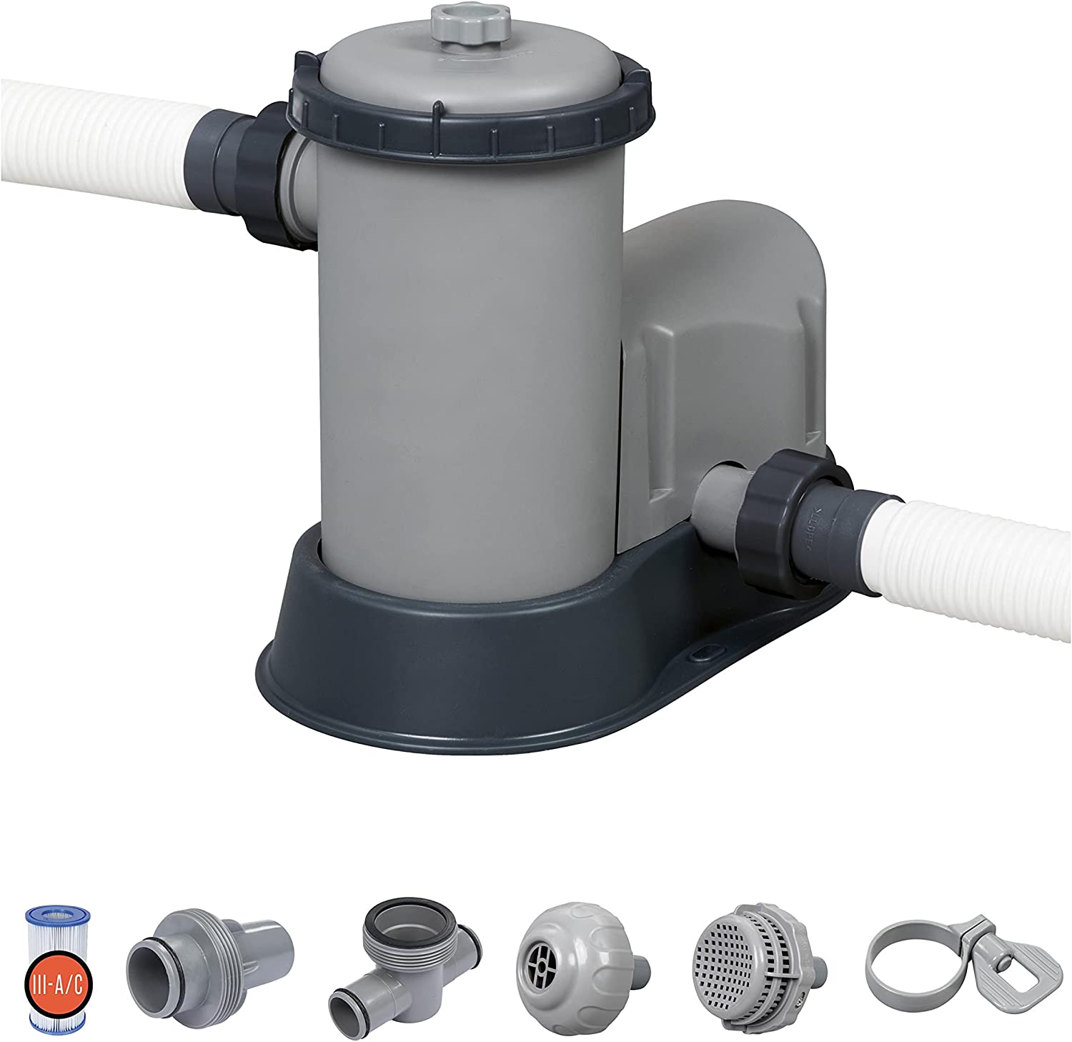 Bestway 58390E Flowclear 1500 GPH Filter Pump for 300 to 8.400 Gallon Above Ground Swimming Pool with Adaptors and Energy Saving Plug