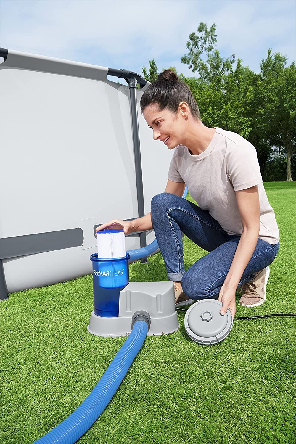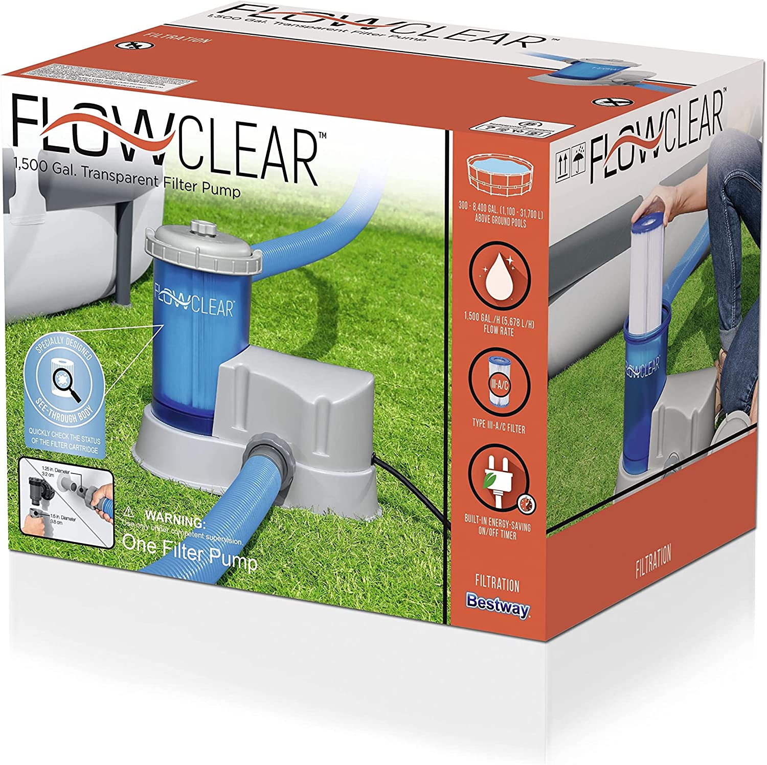 Bestway 58647E-BW Flowclear Transparent Filter Above Ground Pool Pump 1500 GPH Pump Flow Rate. 110-120 Volt for Type III-A/C cartridges