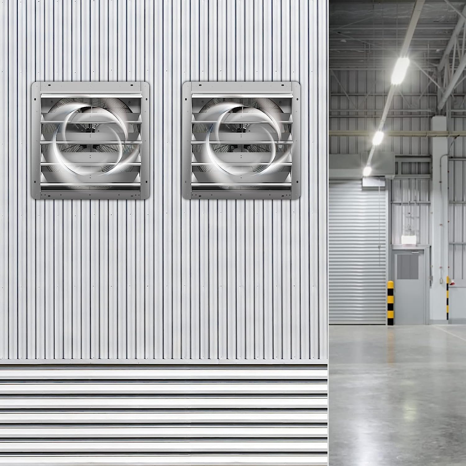 iLiving - 24″ Wall Mounted Exhaust Fan - Automatic Shutter - Variable Speed - Vent Fan For Home Attic. Shed. or Garage Ventilation. 4244 CFM. 6200 SQF Coverage Area (Power Cord Not Included)