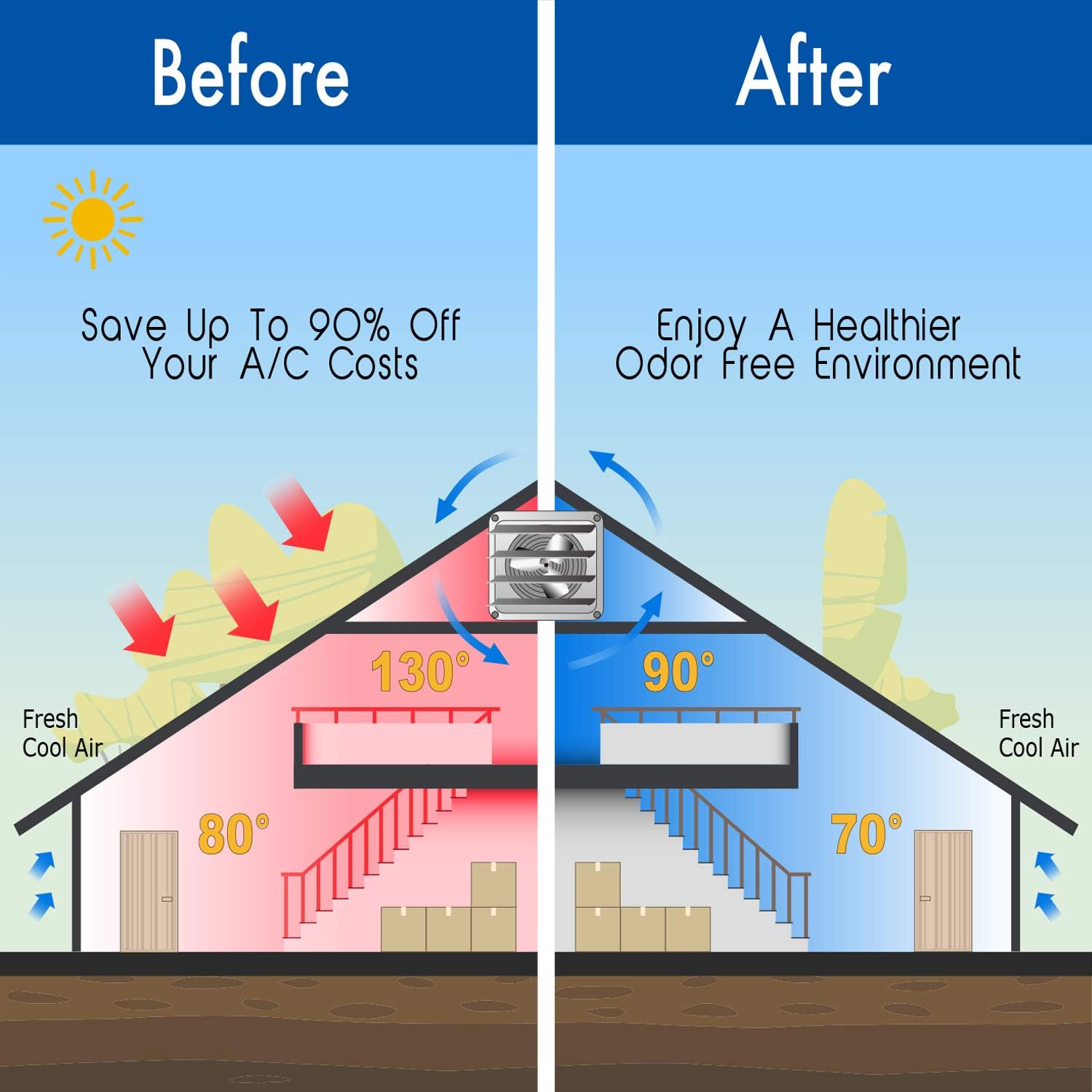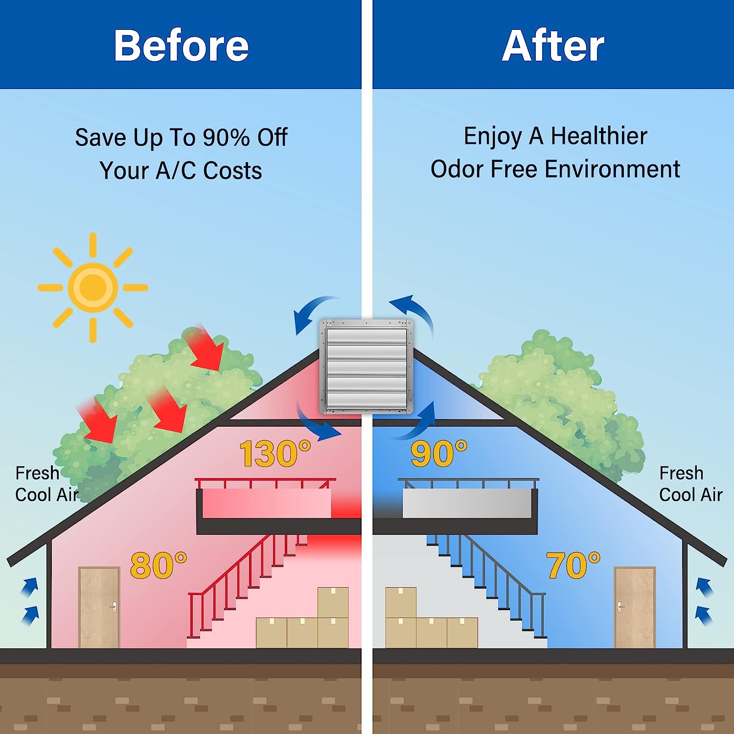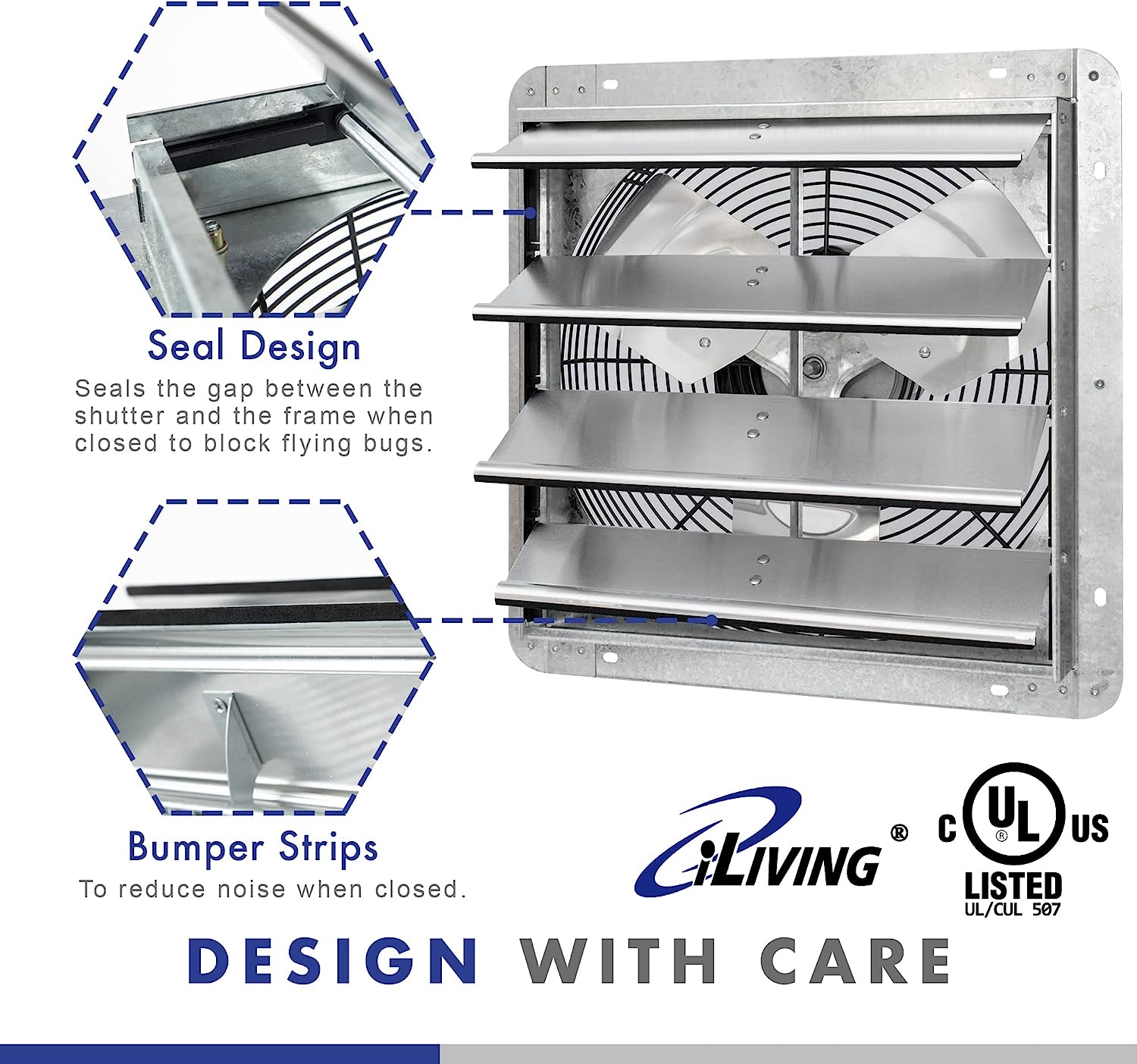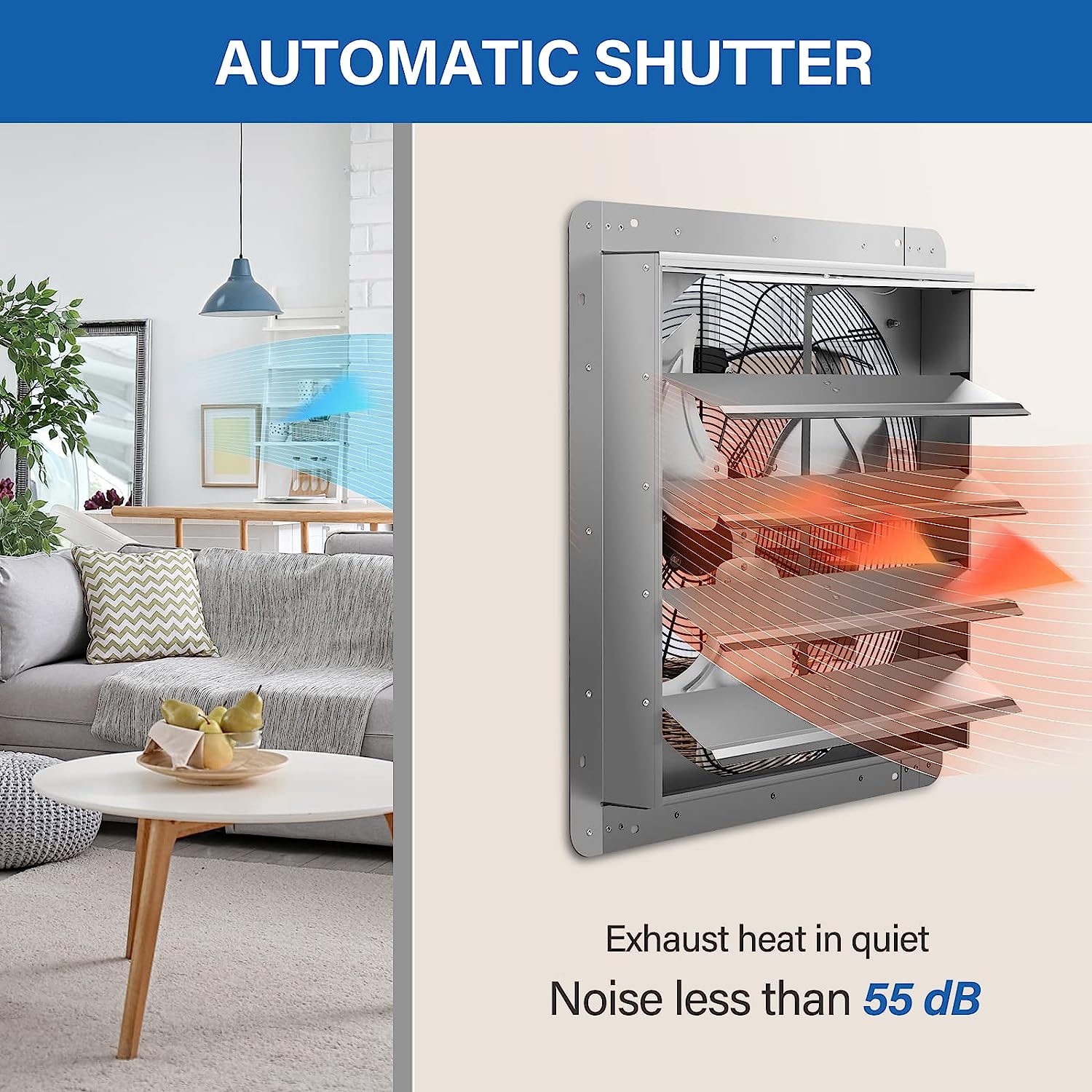 iLiving - 20″ Wall Mounted Exhaust Fan - Automatic Shutter - Variable Speed - Vent Fan For Home Attic. Shed. or Garage Ventilation (Power Cord Not Included)