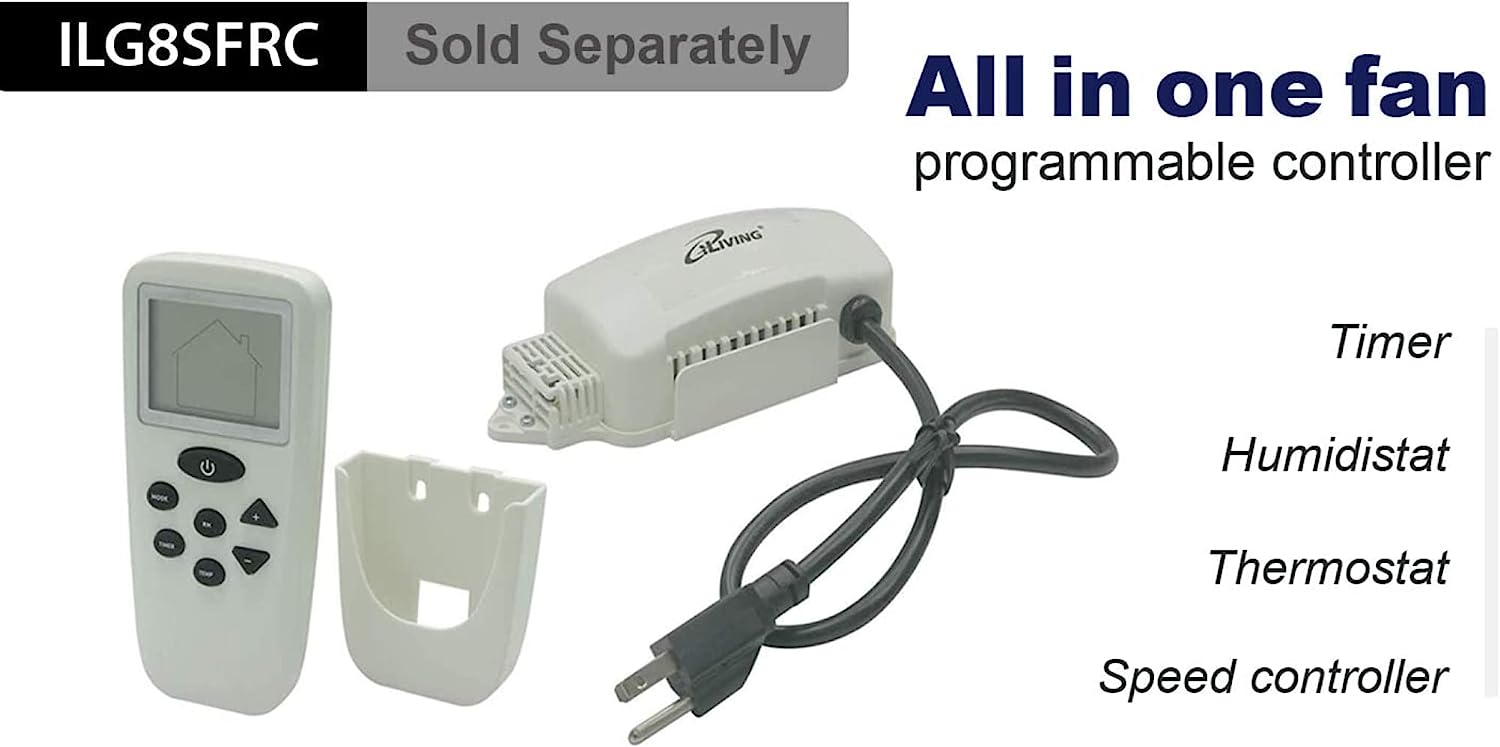 iLIVING 18″ Wall Mounted Shutter Exhaust Fan. Automatic Shutter. with Thermostat and Variable Speed controller. 0.85A. 1736 CFM. 2600 SQF Coverage Area Silver (ILG8SF18V-ST)