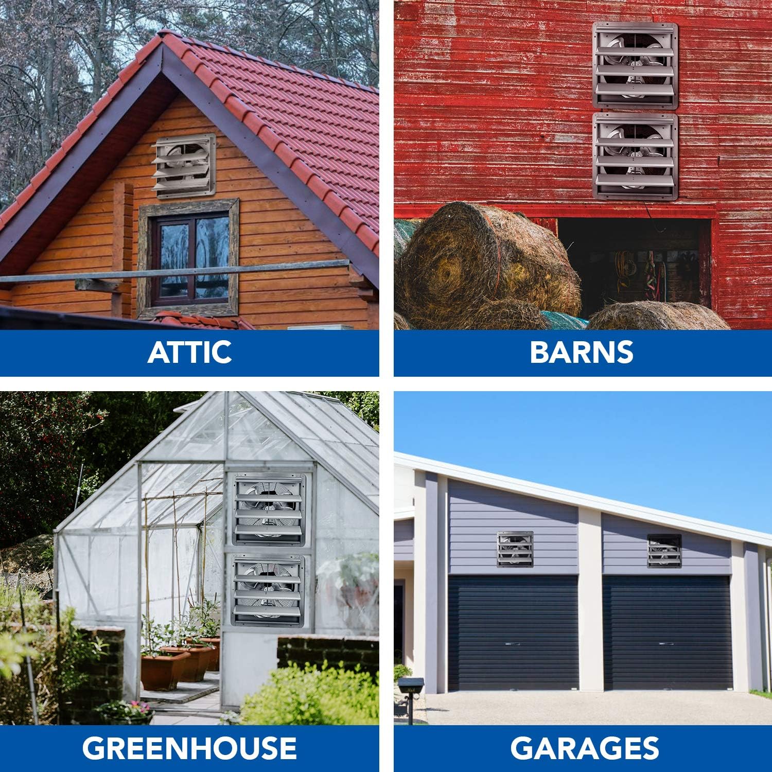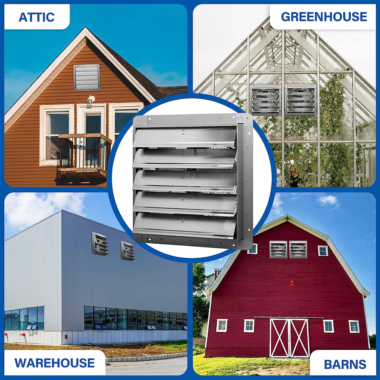 iPower 20.6 X 20.8 Inch Shutter Exhaust Fan Aluminum. High Speed 1190 RPM. 3368 CFM. 1-Pack. Silver