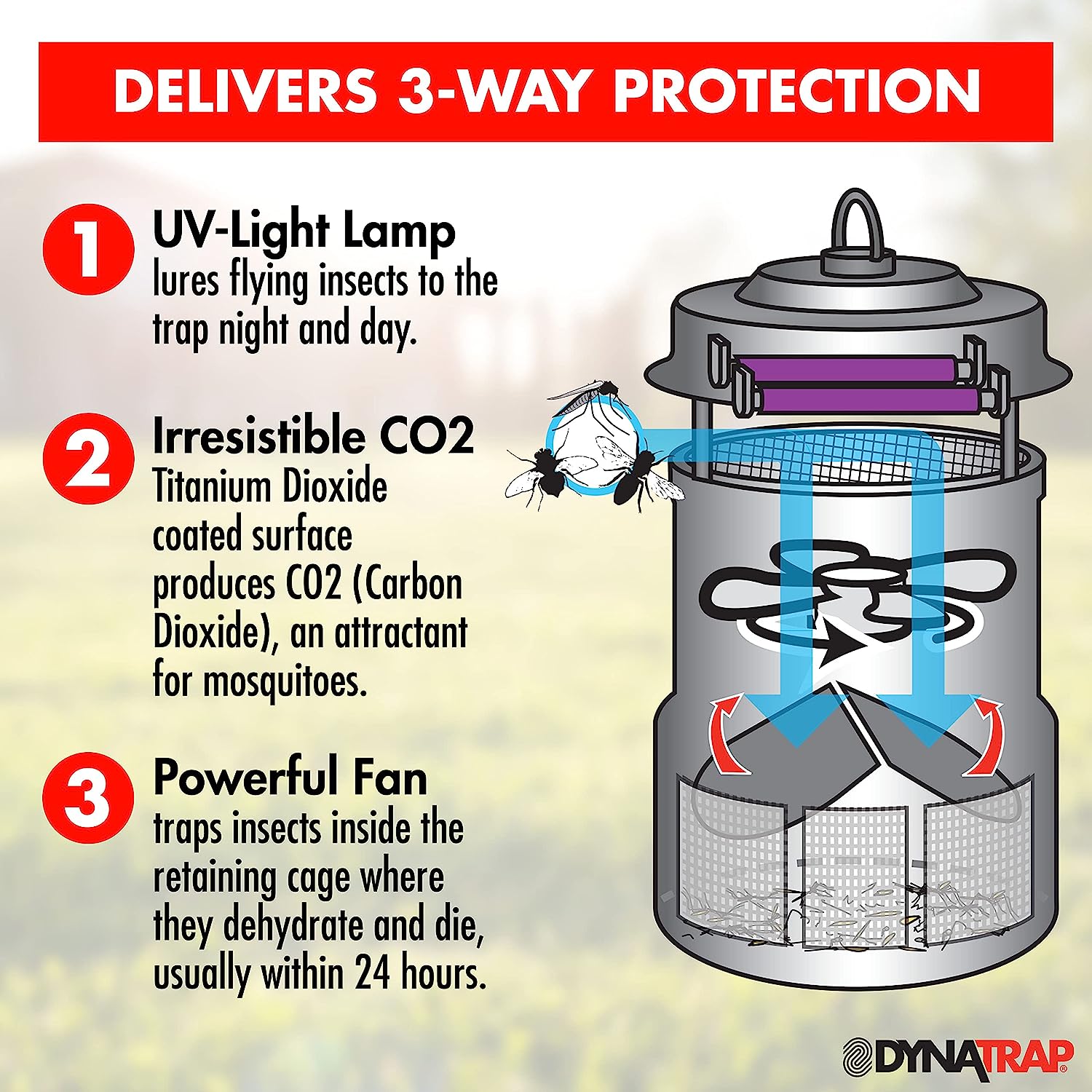 DynaTrap DT1050-AZSR Mosquito. Beetle & Flying Insect Trap – Kills Mosquitoes. Flies. Wasps. Gnats. Beetles & Other Flying Insects – Protects up to 1/2 Acre