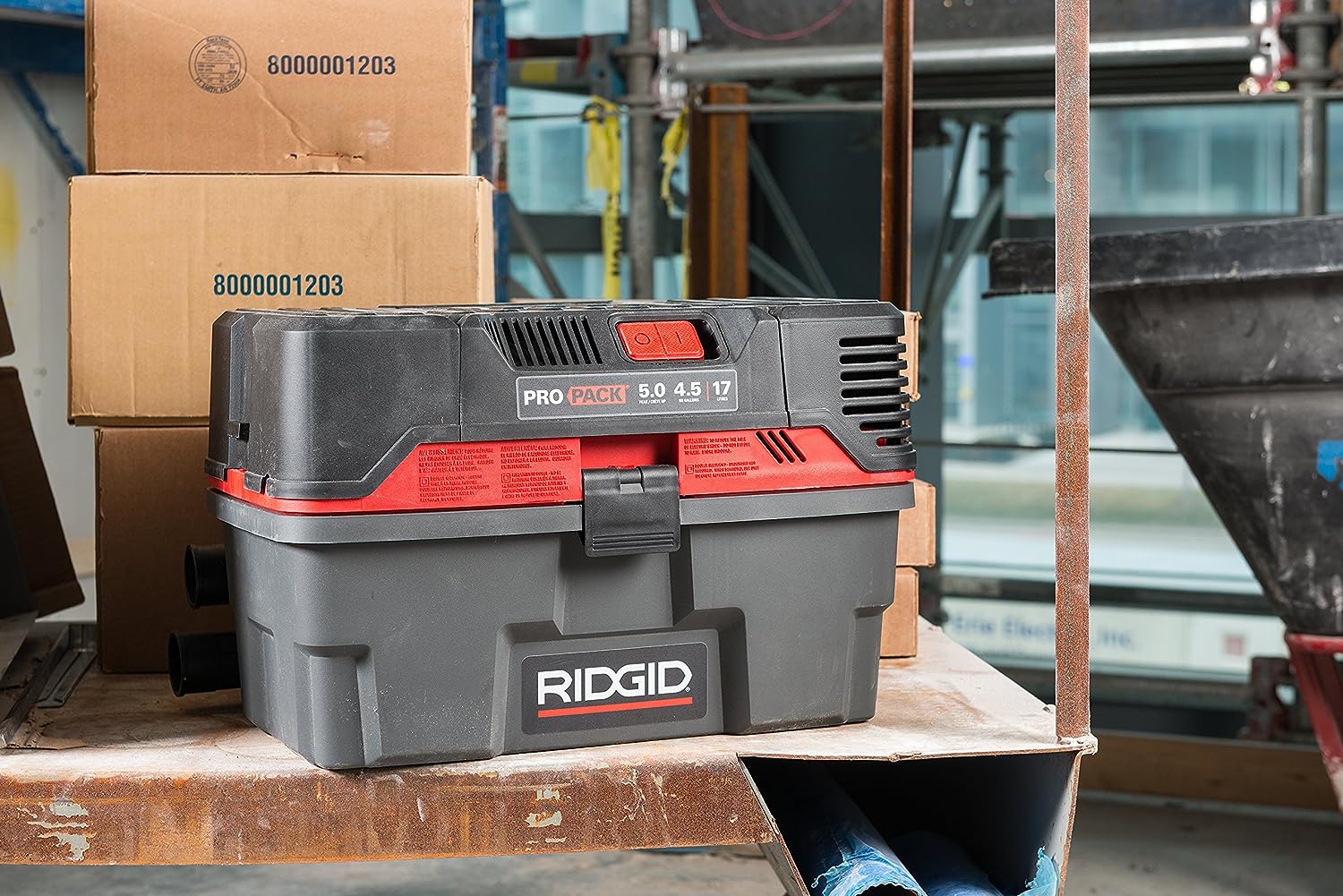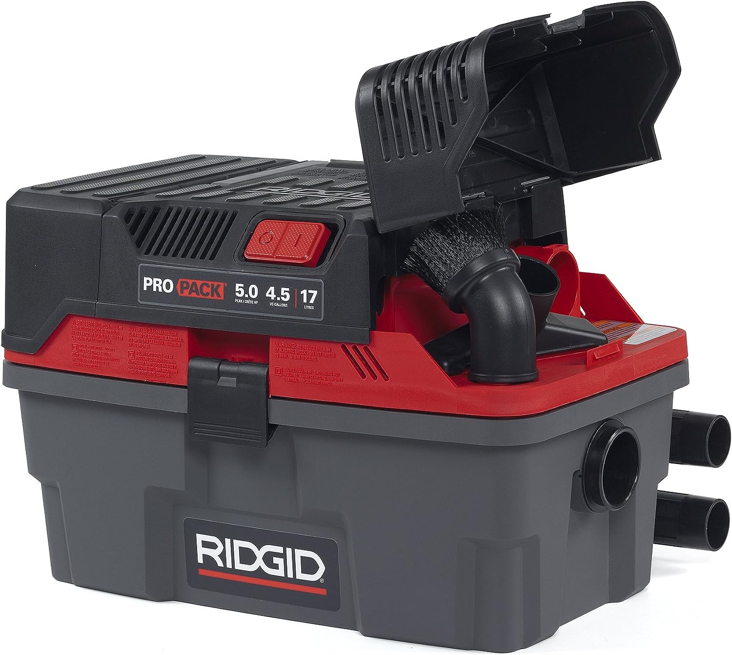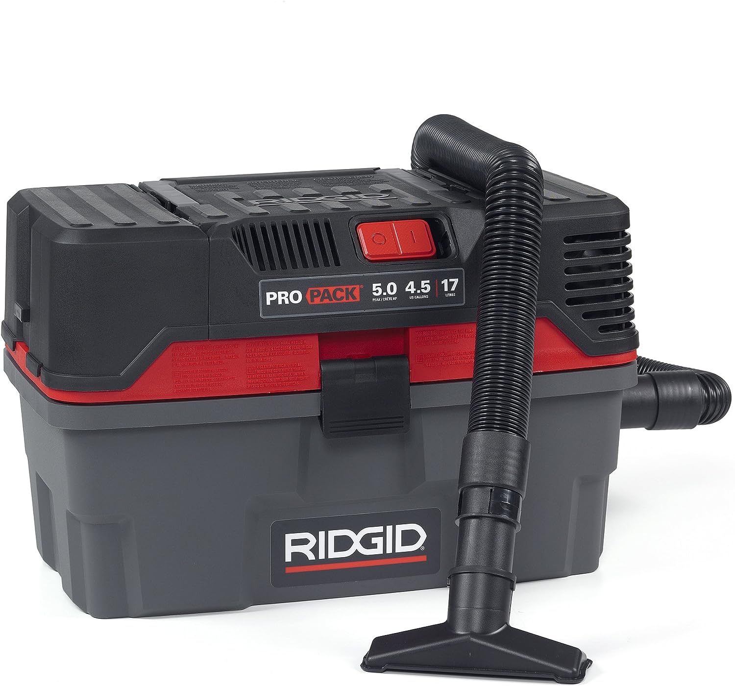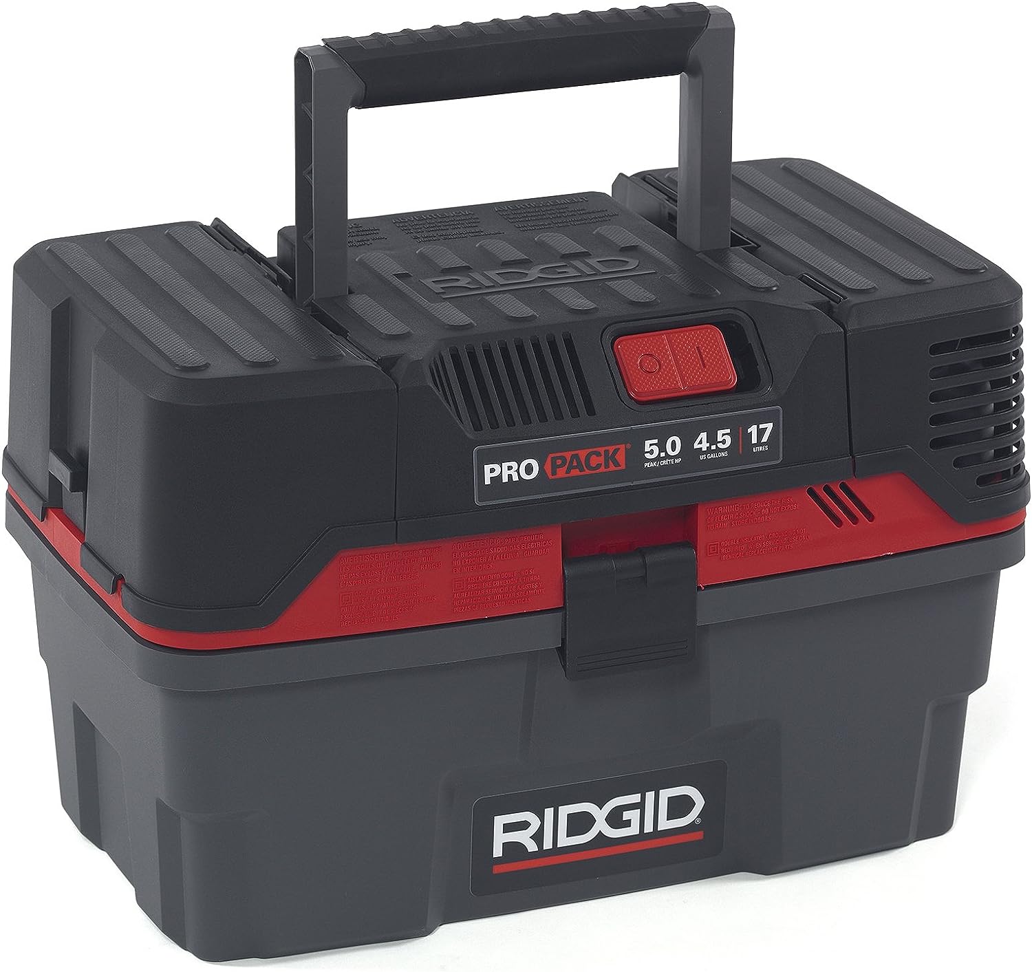 RIDGID 50318 4500RV ProPack 4.5-Gal. Portable Wet Dry Shop Vacuum with Toolbox Design. 5.0 Peak HP Motor. Expandable Pro Hose. and Blower Port. Red
