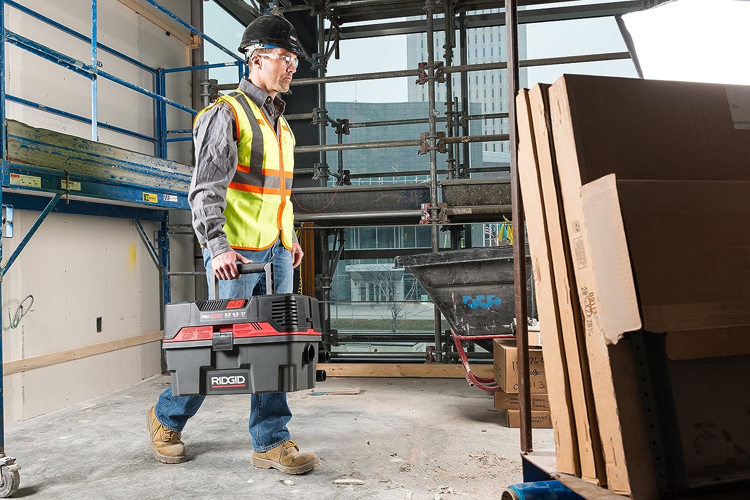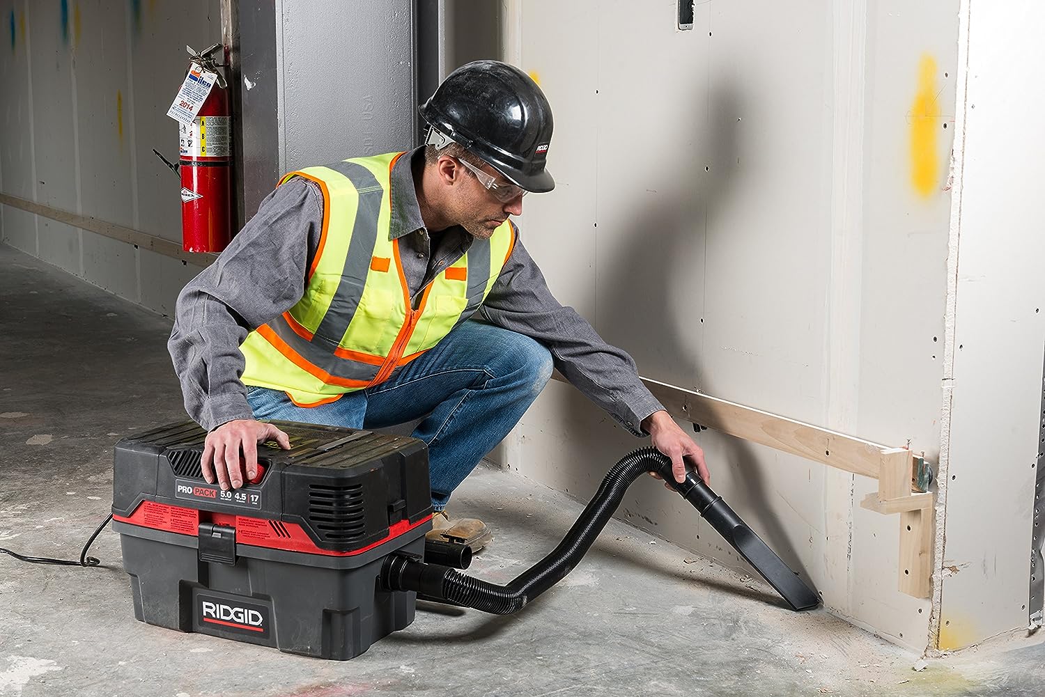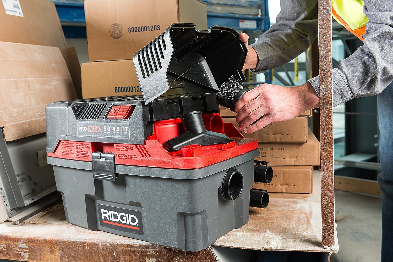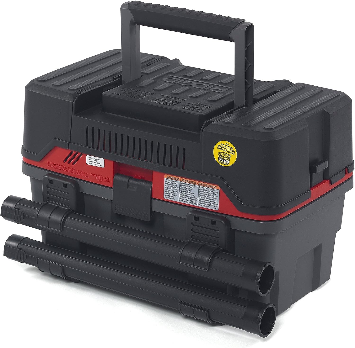 RIDGID 50318 4500RV ProPack 4.5-Gal. Portable Wet Dry Shop Vacuum with Toolbox Design. 5.0 Peak HP Motor. Expandable Pro Hose. and Blower Port. Red