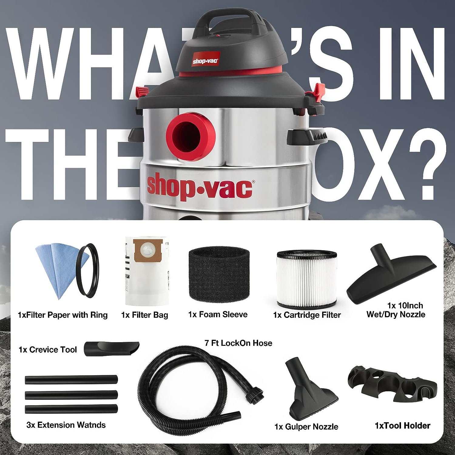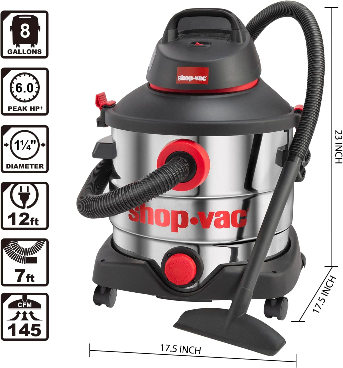 Shop-Vac 8 Gallon 6.0 Peak HP Wet/Dry Vacuum. Stainless Steel Tank. Portable Shop Vacuum with Multifunctional Attachments for Jobsite. Garage & Workshop. 5989400