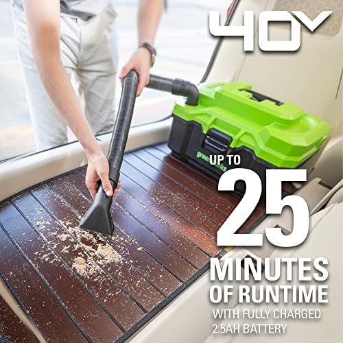 Greenworks 40V (3 Gallon) Cordless Wet / Dry Shop Vacuum + Accessories. 2.0Ah Battery and Charger Included