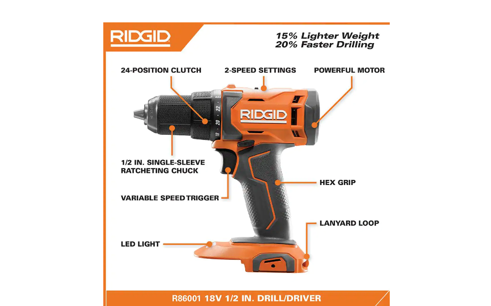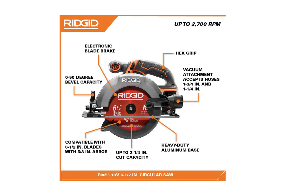 RIDGID R9207 18V Cordless 1/2 in. Drill/Driver and 6-1/2 in. Circular Saw Combo Kit with 2.0 Ah and 4.0 Ah Battery. Charger. and Bag