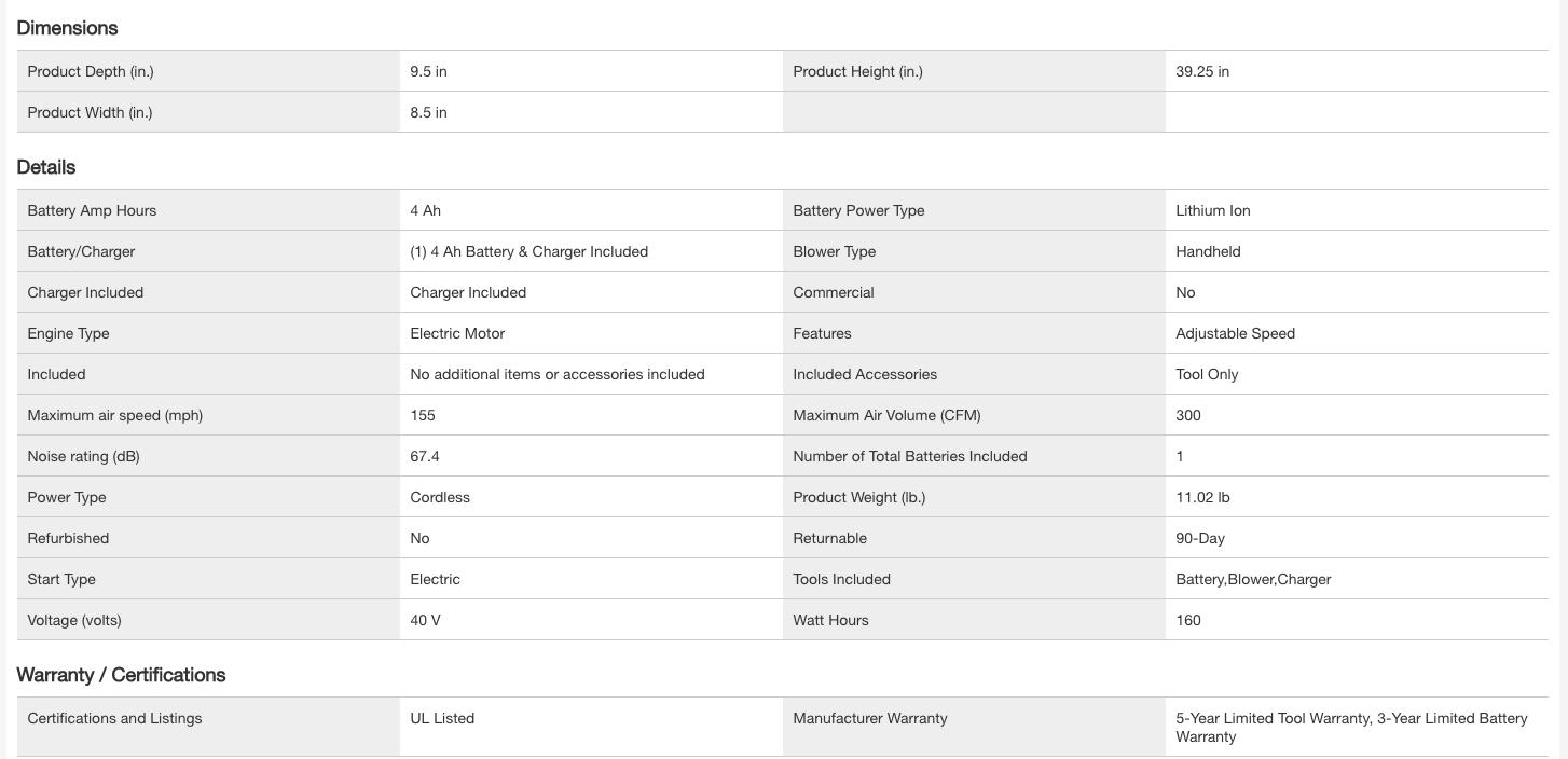 RYOBI RY40412VNM 40V 155 MPH 300 CFM Cordless Battery Jet Fan Leaf Blower with 4.0 Ah Battery and Charger